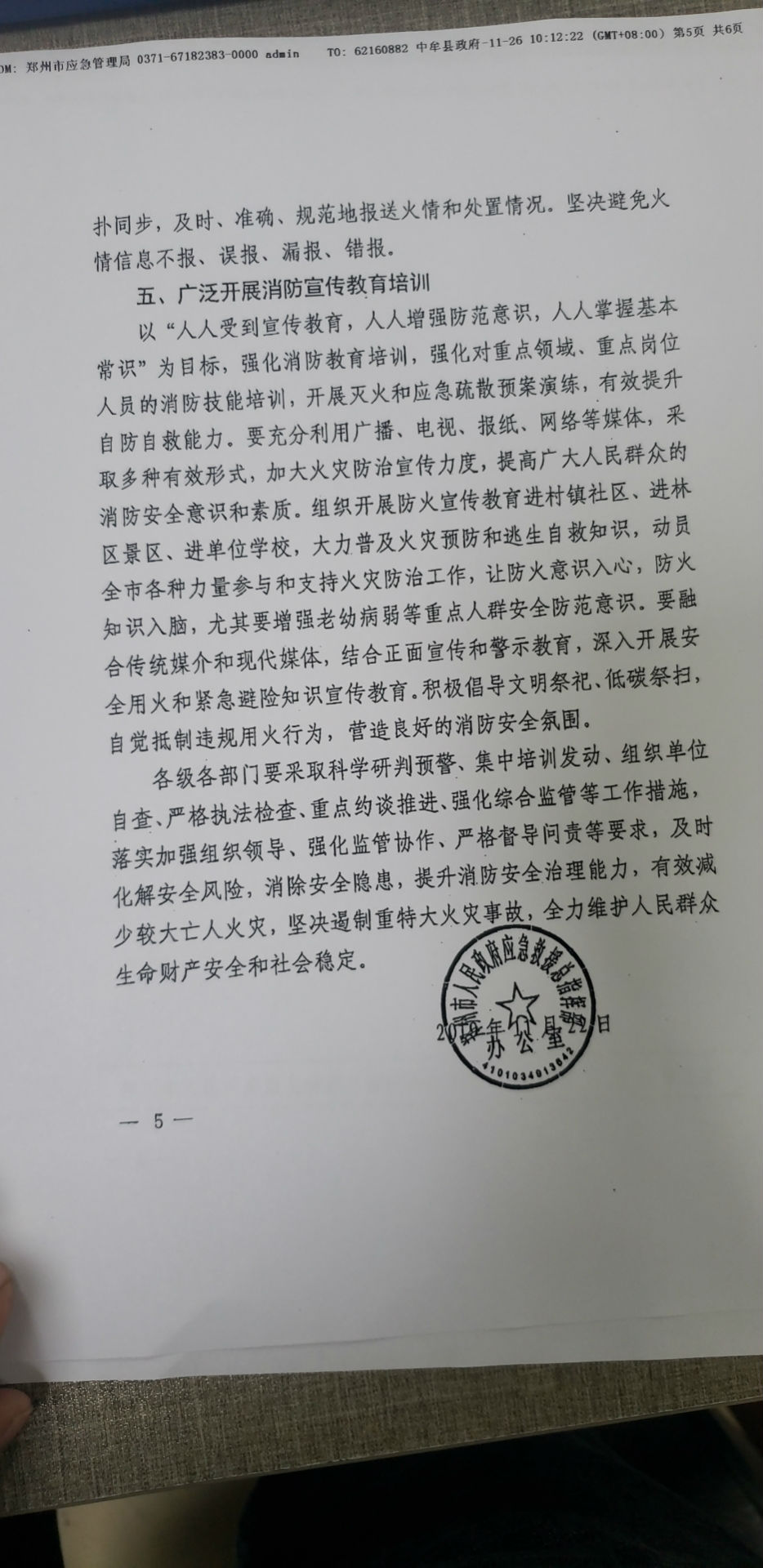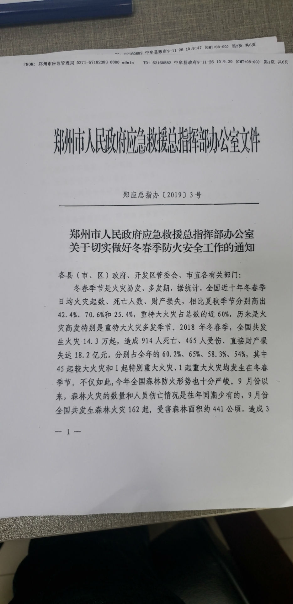 现将郑州市人民政府应急救援总指挥部办公室《关于切实做好冬春季防火安全工作的通知》(郑应总指办〔2019﹞3号)转发给你们,请按照文件要求,认真抓好贯彻落实。