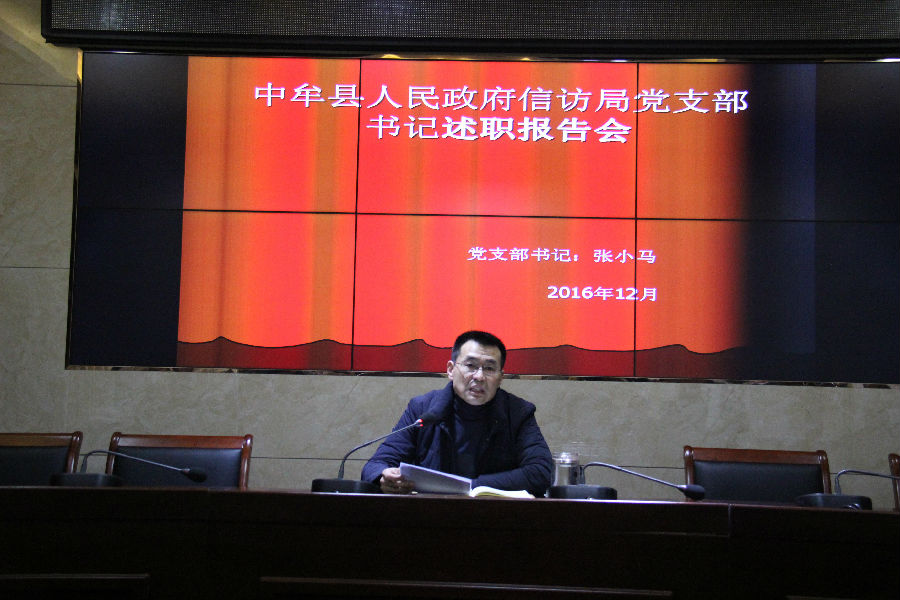 12月26日,中牟县信访局召开党支部书记党建述职报告会。该局党支部书记张小马为全体干部上了一堂党建工作专题党课。