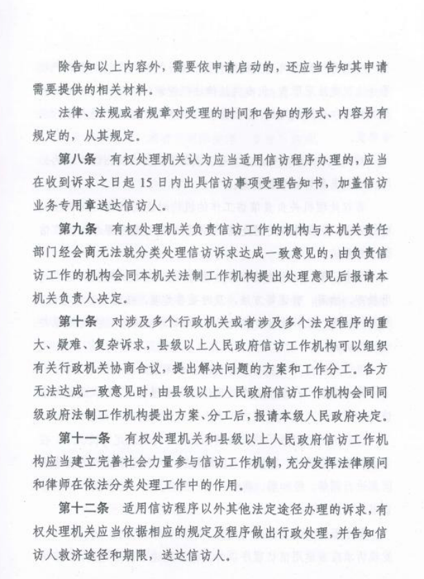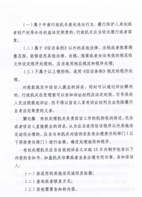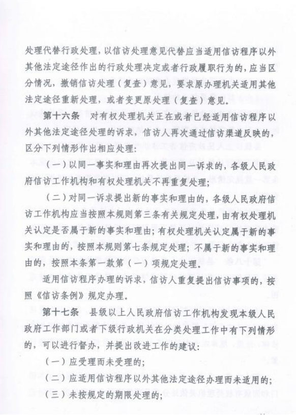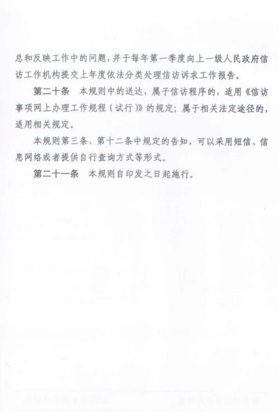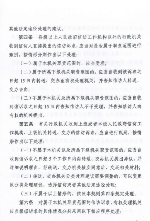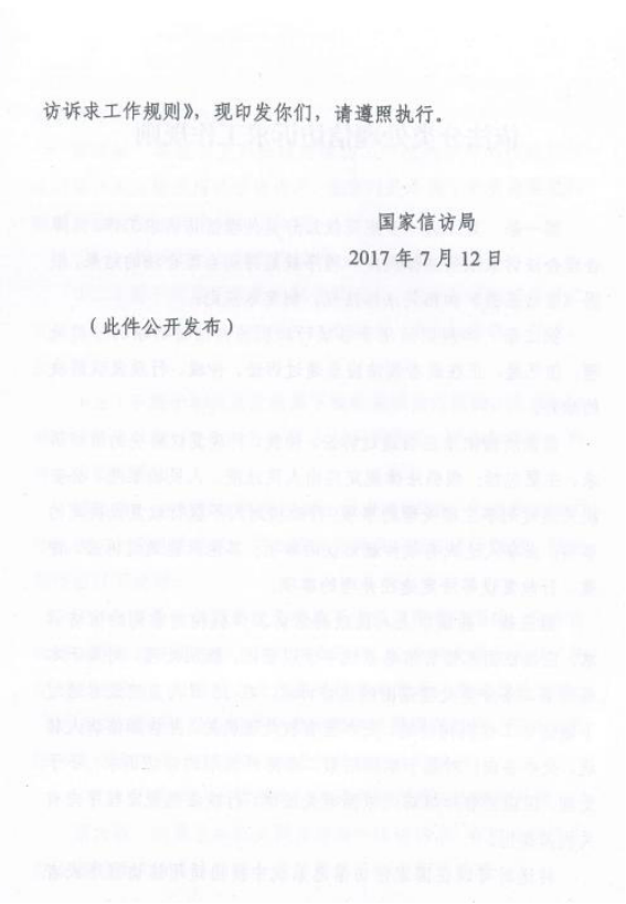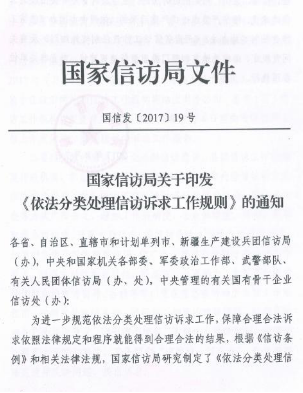 国家信访局关于印发《依法分类处理信访诉求工作规则》