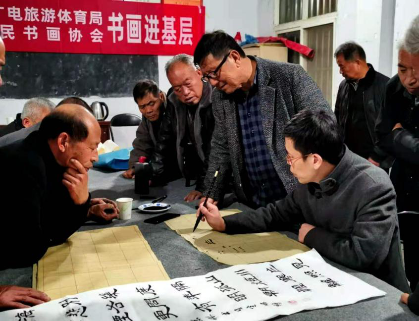 为丰富村民文化生活,营造浓厚的文化氛围,11月19日,由中牟县文化广电旅游体育局主办,中牟县人民文化馆和中牟县农民书画协会承办的“书画培训进基层”系列活动,走进大孟镇王林庄村农民夜校,为二十余名农民书画爱好者进行书画培训。