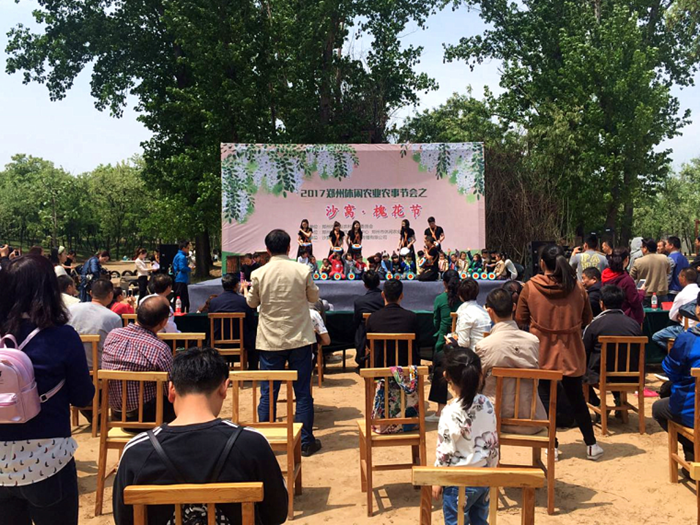 4月26日,中牟县首届“沙窝·槐花节”在沙窝森林公园开幕,来自郑州市、中牟县的相关领导参加开幕式。