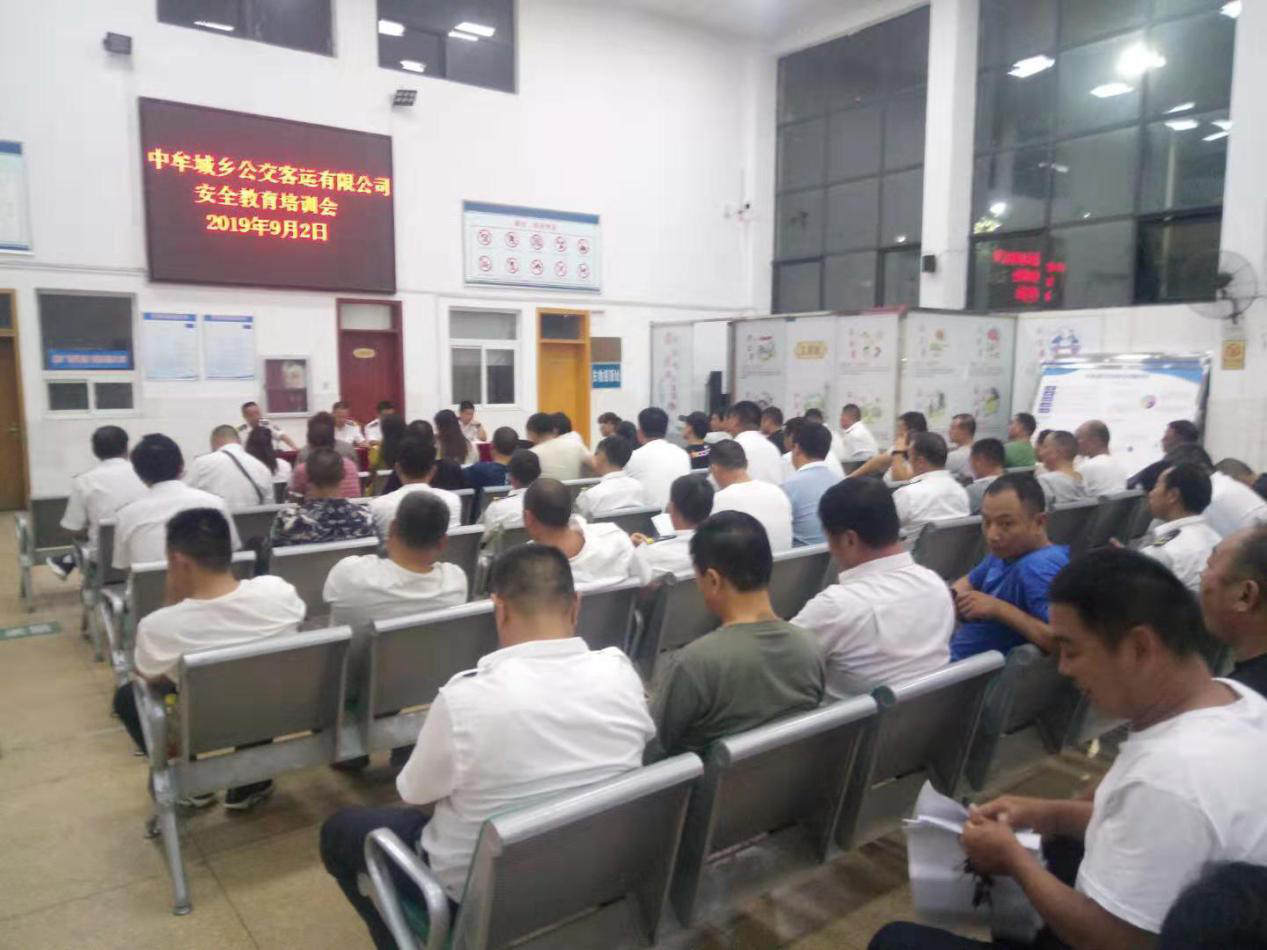 9月2日晚8:30,城乡公交公司在汽车站候车大厅组织召开2019年9月份安全教育培训会,会议由技安科科长郭新主持。