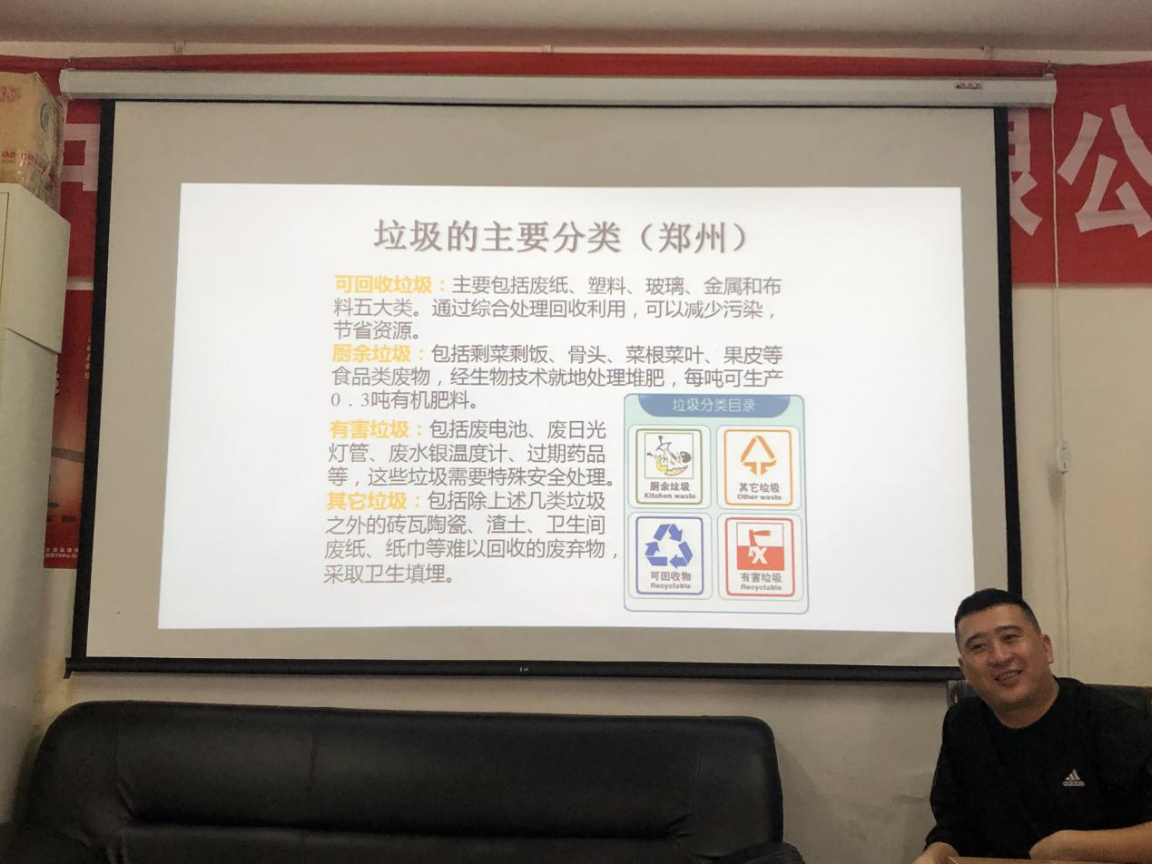 9月17日下午,城乡公交组织全体人员在二楼办公室开展垃圾分类知识宣传教育讲座,特邀河南省安全健康教育中心宣教科主任樊云飞老师给公司职工做了一次生动有趣的垃圾分类讲座,为大家详细讲解垃圾分类的背景、意义、种类以及标准等。进一步提高职工的垃圾分类意识,实现垃圾分类投放正确。