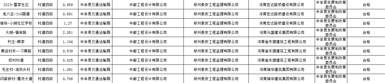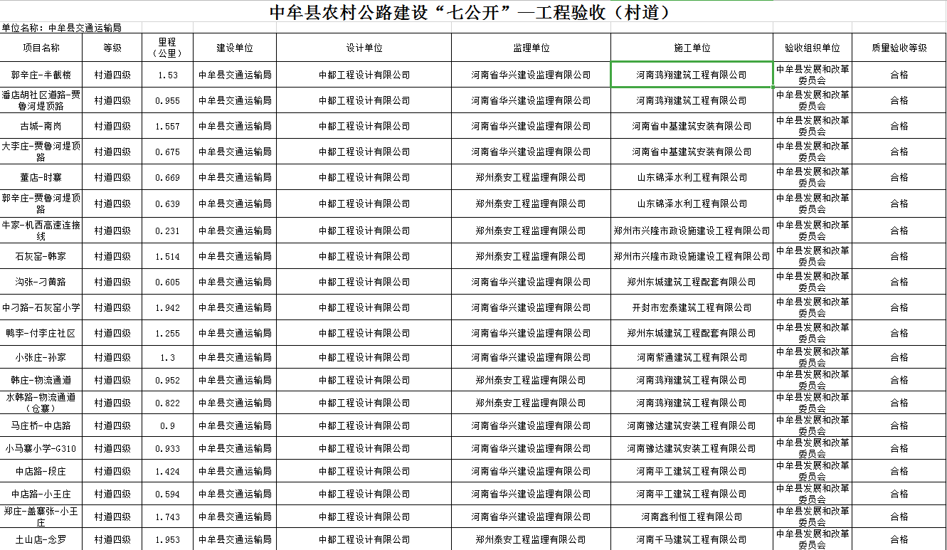 中牟县农村公路建设“七公开”—工程验收(村道)