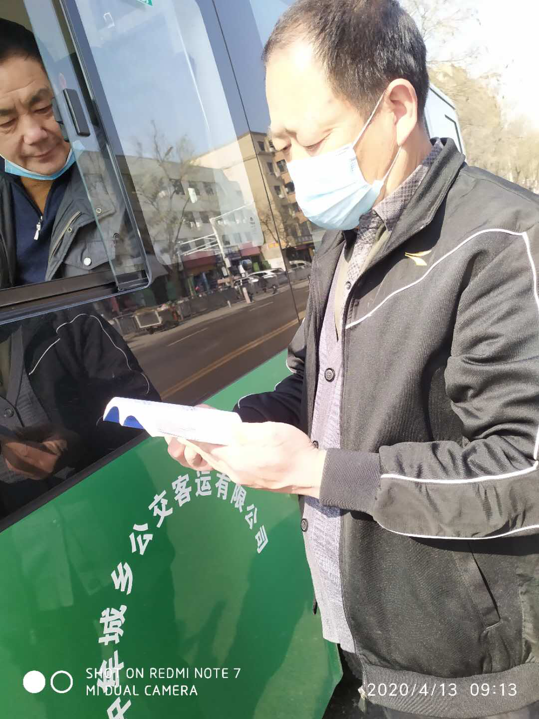 2020年4月13日上午,由郭新委员、毛科长带队对公司营运车辆进行了安全隐患排查。重点对车辆乘客信息登记表、灭火器、安全锤、应急开关、安全警告标志、车载GPS监控设备和安检本进行排查,经排查均未发现安全隐患。