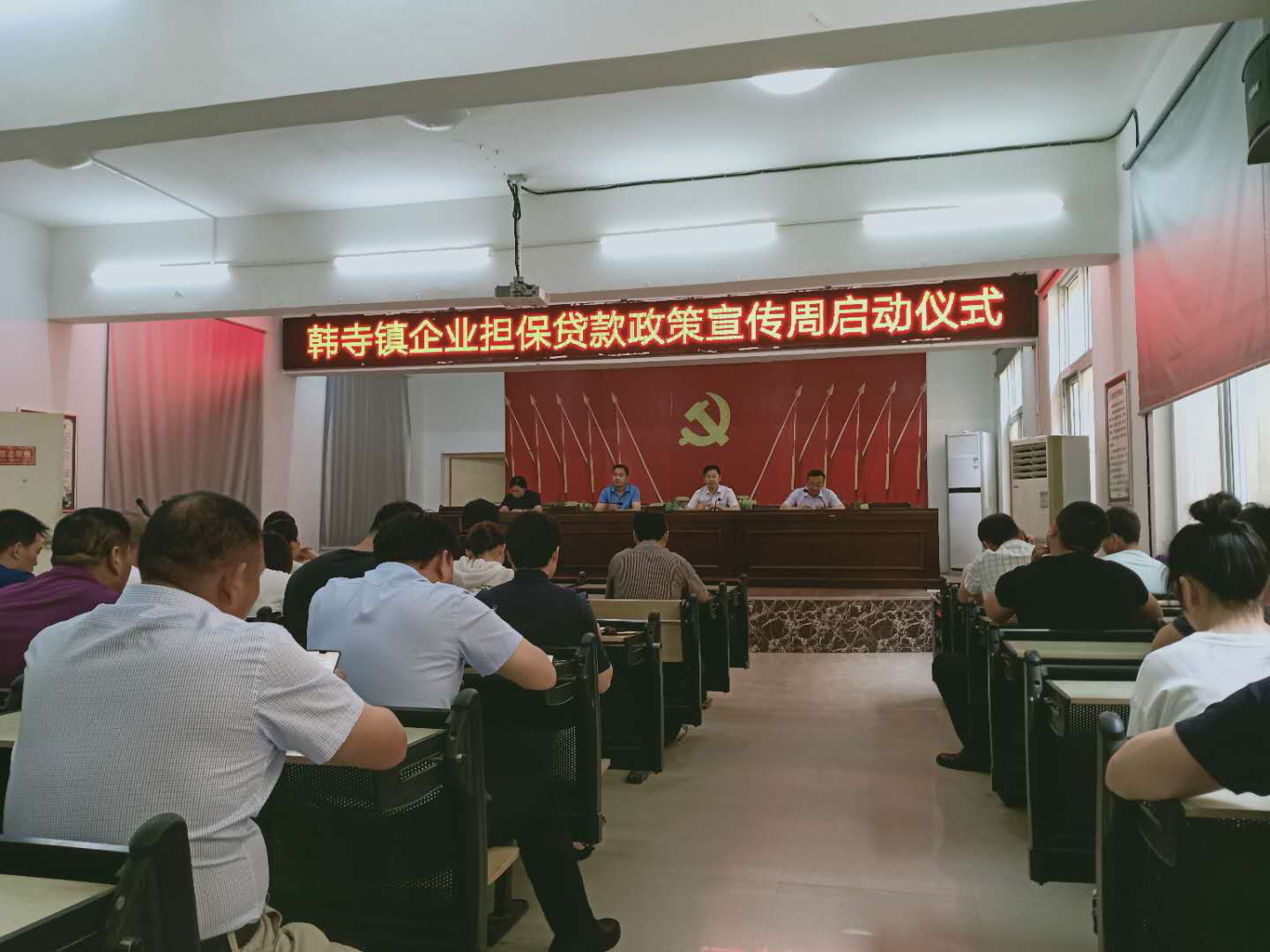 5月26日上午,韩寺镇召开创业担保贷款宣传周启动仪式,全体班子成员、全体机关干部、部分商户代表参加宣传周启动仪式。