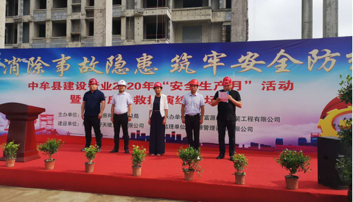 2020年6月18日上午,县住建局联合河南富源建筑安装工程有限公司围绕“消除事故隐患,筑牢安全防线”主题精心策划,组织开展建筑行业“安全生产月”活动暨安全生产应急演练现场观摩会。住建局党组副书记郭东丽、安监站全体人员及在建工程项目负责人参加本次观摩会。