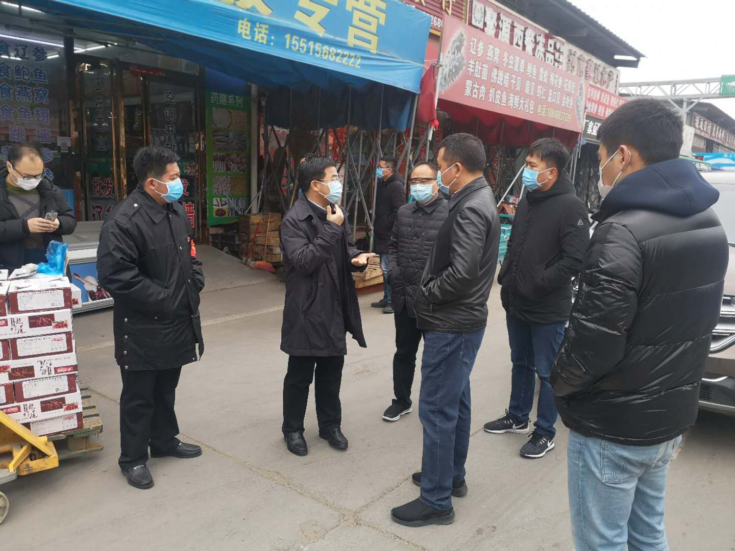 2月26日上午,县委书记潘开名到郑庵镇万邦水产市场调研疫情防控和复工复产工作,中牟县汽车管委会副主任张振中、万邦集团总裁李保全等陪同。
