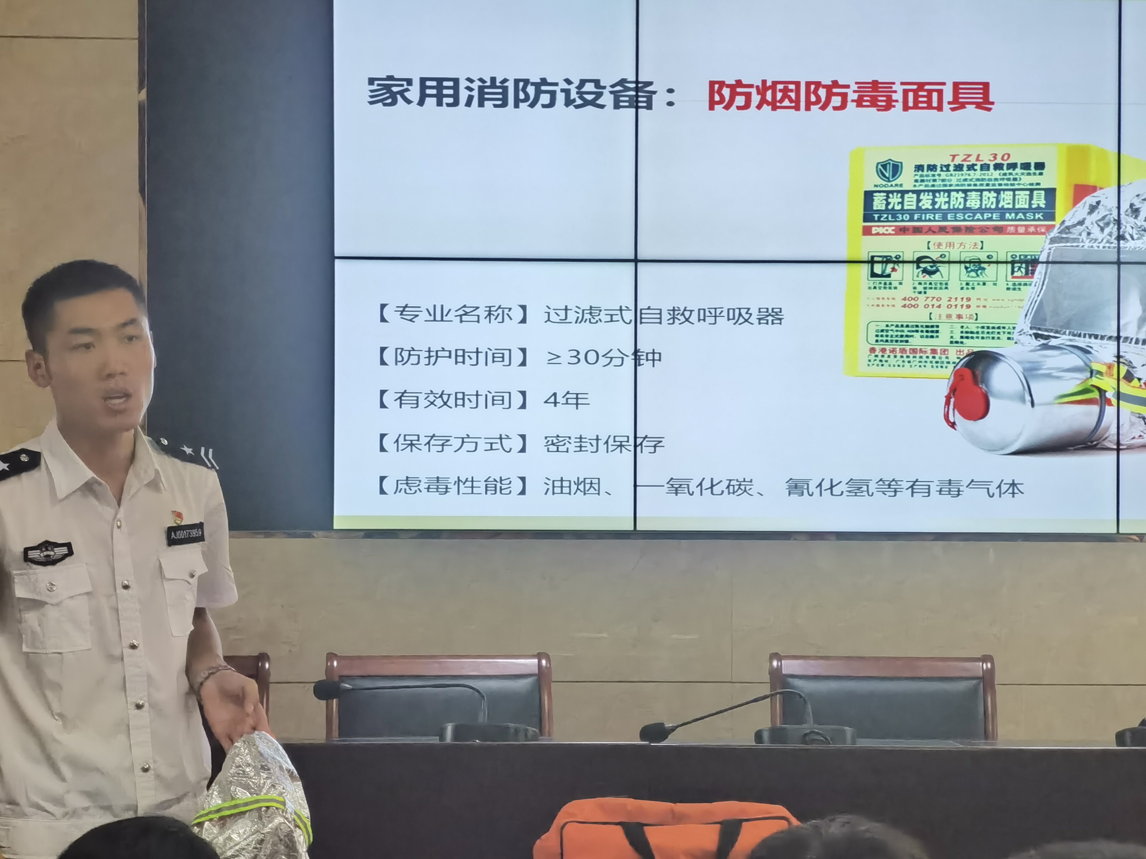 培训课上,消防员采用PPT形式进行授课。培训内容主要介绍容易引发火灾的消防安全隐患、家庭及工作场合电器设施设备正确使用、火情紧急处理情况、鉴别灭火器是否有效和正确使用灭火器材的方法、火灾疏散常识以及公共场所及家庭必备的灭火器材等。此次培训结合现实中大量事故案例生动的讲解及特大火灾案例现场,触目惊心的视频播放,使大家受到了深刻的警示教育。培训现场还使用配备的电子灭火设备,模拟了灭火现场,并进行实际操作演练。