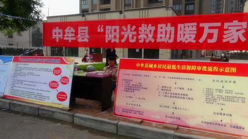 为进一步做好社会救助工作,提高社会救助工作的透明度,中牟县民政局依照郑州市民政局关于举行社会救助政策宣传活动的通知精神,结合我县阳光救助暖万家活动月活动,于2016年5月10日在中牟县世纪城北门举办了大型社会救助政策宣传活动。此次活动共制作宣传版面3块,印发《社会救助宣传手册》、《社会救助政策解读》以及河南省全面清查因征地拆迁违规办理低保、城乡医疗救助须知等宣传页一万五千份,现场工作人员一一将宣传材料递到前来参加活动的居民手中,受到了广大群众的热烈欢迎。