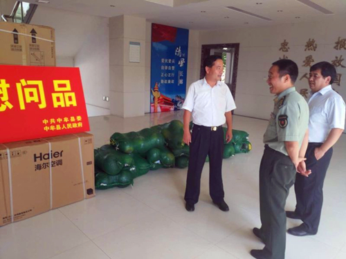卢志刚等县领导一行来到县人武部、县消防大队、县中队等地,看望慰问驻军部队,向广大部队官兵送上节日的祝福和诚挚的问候,并送上空调、西瓜等慰问品。