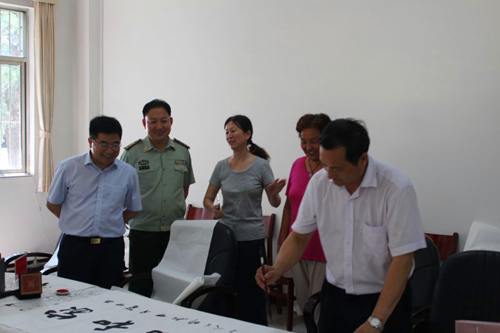 7月28日上午,县双拥办协调中牟县农民书画协会,深入武警河南总队训练基地为子弟兵现场送书画。此次送书画进军营活动,共为子弟兵赠送书法作品200余幅、美术作品30余幅。受到了广大子弟兵的欢迎。
