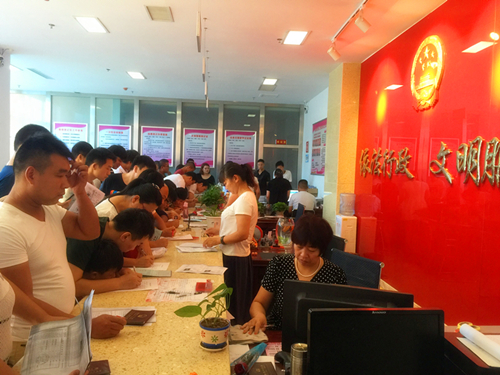 8月9日,中国传统情人节“七夕”到来,中牟县民政局婚姻登记处迎来结婚登记小高潮。不少年轻人都趁着富有浪漫色彩的七夕日,来完成“人生大事”,今天一大早门还没开就已经有新人在排队了。为应对登记高峰,婚姻登记处提前上班、增设登记窗口、优化登记程序以及延长工作时间等措施,确保满足新人的结婚登记需求。“七夕”节当天,共办理了结婚登记187对。是平常的4倍,比去年同期多20%左右。