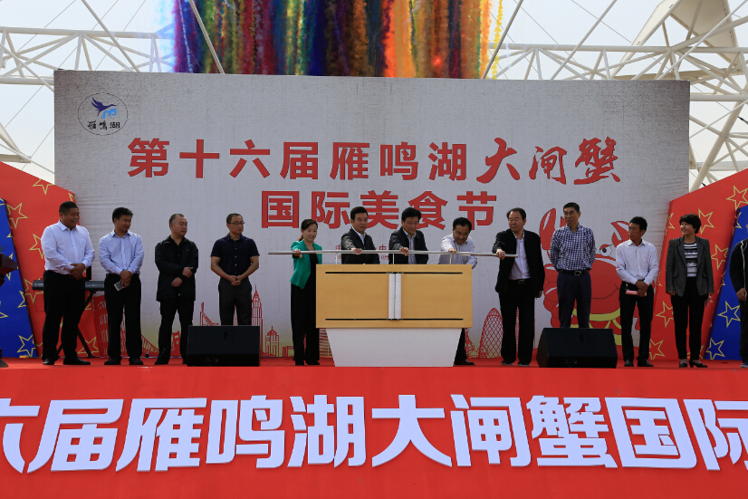 2016年10月1日上午,郑州〮中牟第十六届雁鸣湖大闸蟹国际美食节在中牟现代农业示范园隆重开幕。县人大常委会副主任段长兴、县政府副县长杨书立、县政府副县长李慧芳、县政协党组副书记张书勤、县政协副主席朱怀召、县人民检察院检察长张捍卫、郑州市雁鸣湖生态风景区管委会主任骆照顺、郑州现代农业示范区管委会副主任刘聚宝、县农委主任樊守峰、县文广旅游局局长王成立、雁鸣湖镇党委书记刘海玲、镇长白钢林、雁鸣湖大闸蟹养殖代表朱玉有出席此次开幕式。