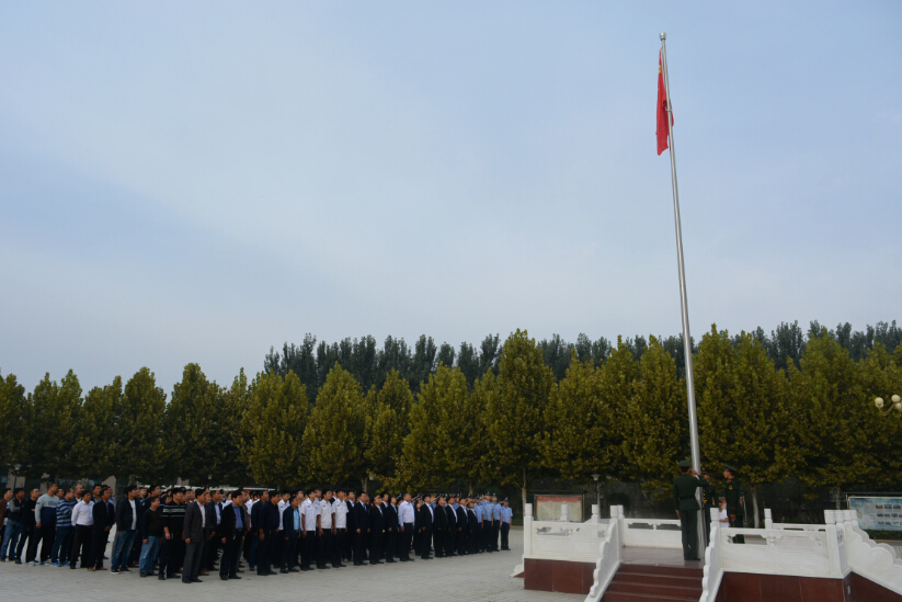 10月8日上午8时,国庆假期后第一个工作日,雁鸣湖镇全体机关干部、各行政村两委干部,整齐列队在旗杆下,满怀庄重和自豪的神情,注视着五星红旗在雄壮的国歌声中冉冉升起,爱国敬业、团结干事的激情在干部们心中澎湃,重燃了全体机关干部的爱国热情。