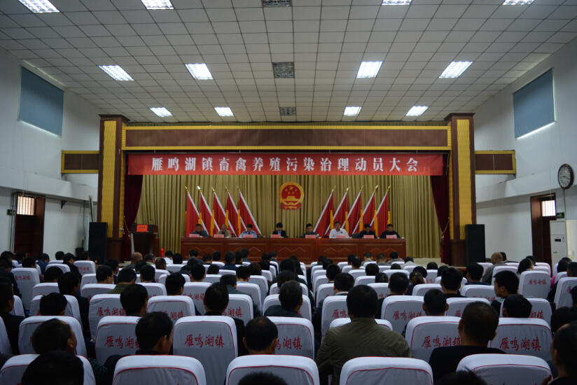 10月9日,雁鸣湖镇在一楼报告厅组织召开畜禽养殖污染治理工作动员大会,会议由镇人大主席王锋主持。县政府副县长杨书立、县公安局副局长朱永生、县畜牧中心副主任王占海、县环保局纪检书记宋韦华、全体班子成员、包户干部、各村支部书记、村主任、相关镇直部门负责人及养殖户代表参加了会议。