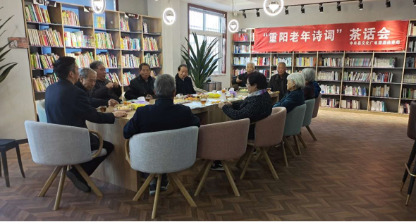 “重阳老年诗词”茶话会篇。10月24日上午,“重阳老年诗词”茶话会在府前街郑品书舍举行。茶话会邀请了热爱文学、爱好写作的“老年诗词协会”近10位老人,他们欢聚一堂畅所欲言,分享交流心得,现场即兴创作,在这个金桂飘香的季节里,以诗抒情、以文会友。并通过这次机会,带领老人参观郑品书舍,为我们的文化工作提出意见和建议,让老年人度过一个温馨而又具有意义的节日。