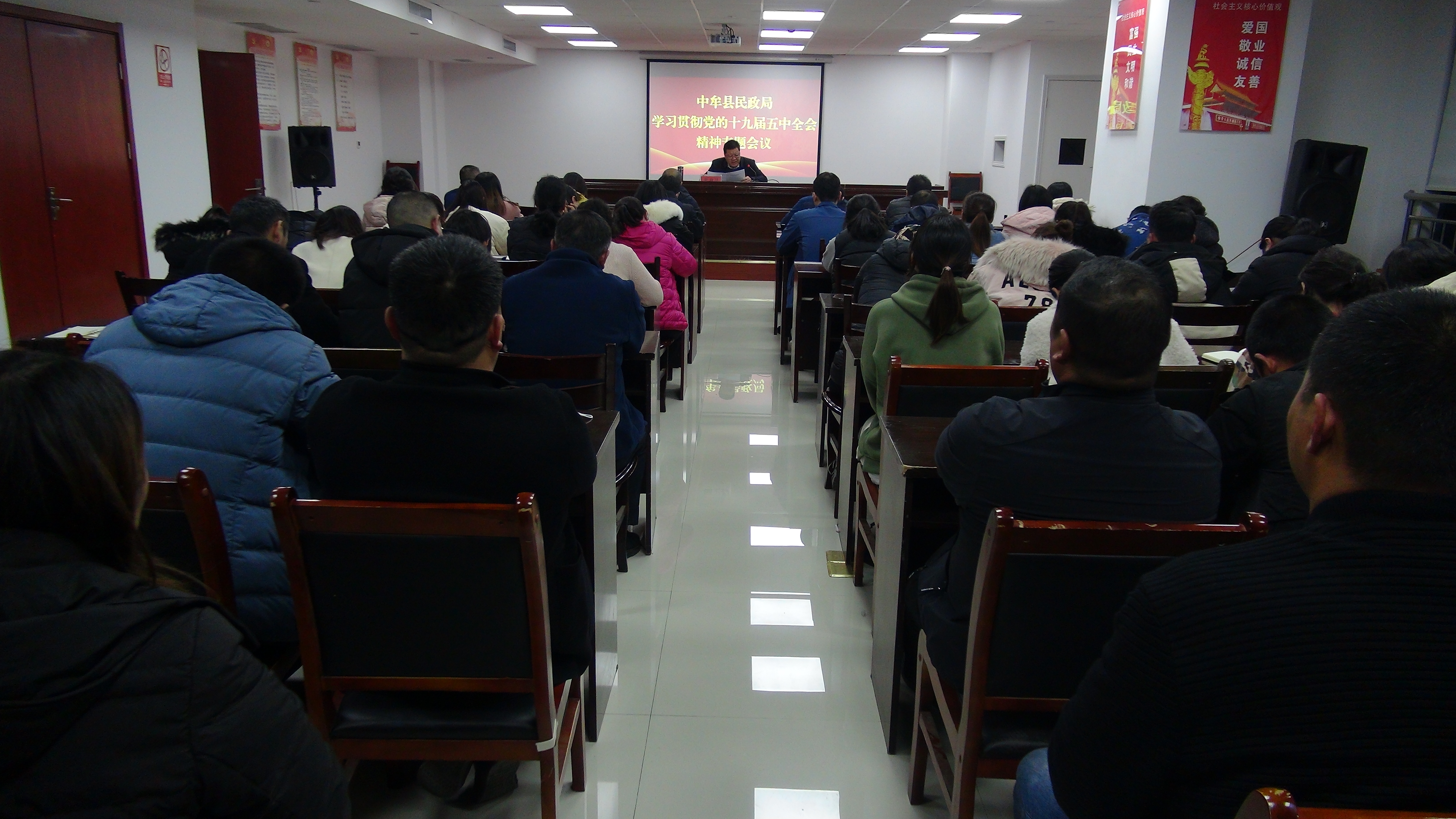 11月24日下午,中牟县民政局在房产大厦15楼会议室组织召开民政系统学习贯彻党的十九届五中全会精神会议。民政系统全体干部职工参加。