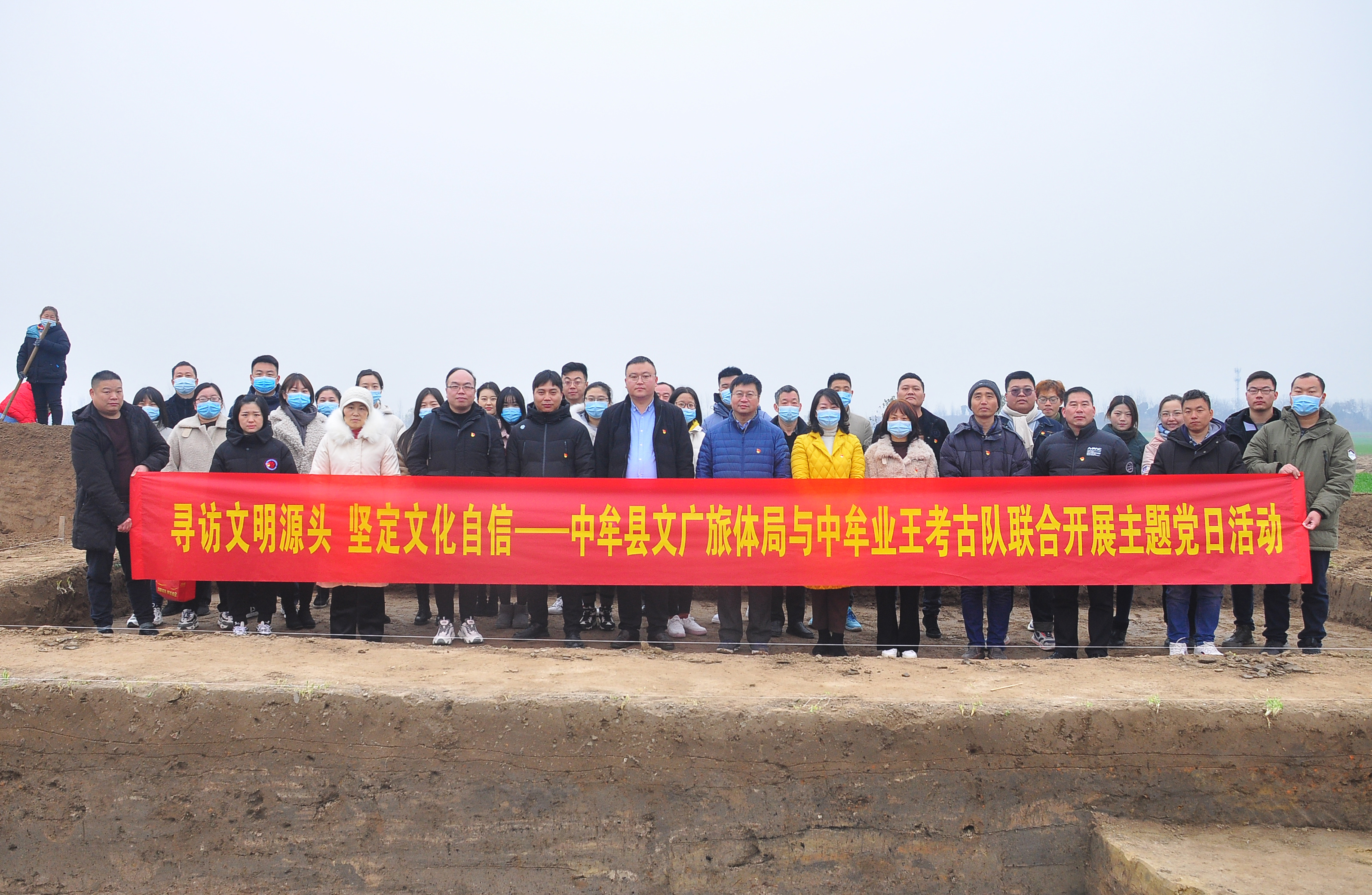 12月9日,中牟县文化广电旅游体育局联合业王考古队前往黄店镇业王遗址开展“寻访文明源头 坚定文化自信”主题党日活动。首都师范大学历史学院党委书记董增刚、局党组副书记许文焕、副局长卢振霞、业王考古队队员以及局党员干部共同参与活动。