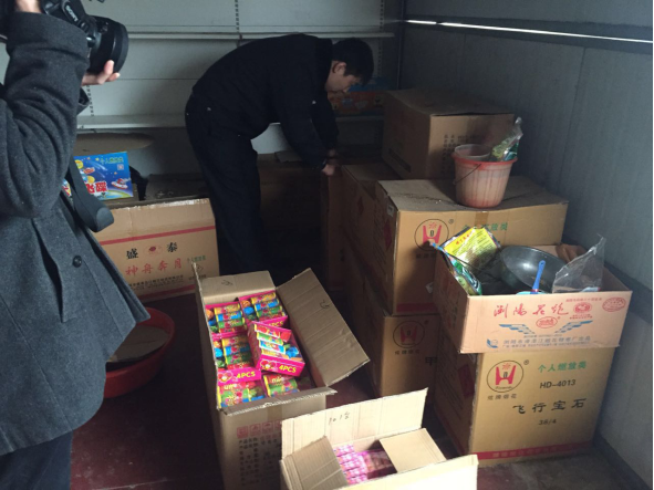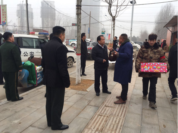 元月10日,广惠街街道党工委常务副书记王林祥带队,组织公安、消防、巡防、安检等部门120余人,对辖区内31家沿街商户烟花爆竹销售情况进行突击检查,查出收缴各类烟花爆竹28箱,同时加大宣传力度,实现禁放区内全面禁止燃放烟花爆竹。