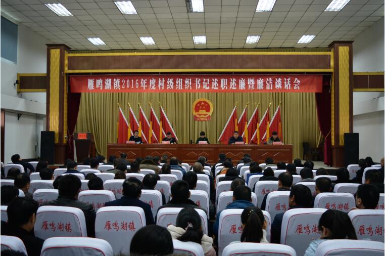 1月14日上午,雁鸣湖镇召开2016年度村支部书记述职述廉暨廉洁谈话会议。全体班子成员、机关干部、镇直部门负责人、村三主干等200余人参加会议。会议由镇人大主席王锋主持。