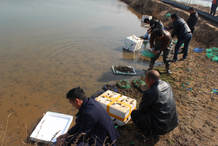 春种秋收,大闸蟹养殖也是同样的道理。阳春三月,万物复苏,残雪消融,春风拂面,天气回暖,正是投放蟹苗的最佳时节。3月6日上午,雁鸣湖大闸蟹养殖基地“热闹非凡”,一边是手忙脚乱放蟹的蟹农,一边是手舞足蹈的小蟹苗,第一批6000余斤百万只蟹苗陆续下湖。