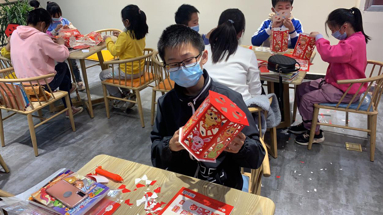 活动伊始,工作人员首先带领大家了解“花灯”的由来和典故,并派发制作灯笼的材料,讲解灯笼的制作流程和注意细节。而花灯制作环节,是孩子们发挥动手能力的大好机会。通过专心致志地裁剪、粘贴,孩子们亲手制作的花灯逐渐呈现在眼前,五彩缤纷的灯笼满载着孩子们的祝福与愿望,也为这个春节增添一丝喜庆气息!