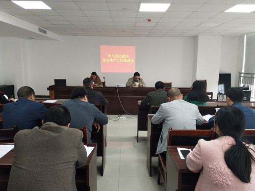 11月9日下午,中牟县民政局在机关会议室召开安全生产工作推进会,党组副书记周盾营、机关党支部书记王喜凤、机关各科室及二级机构负责人参加了会议。