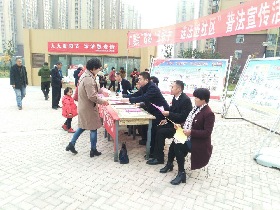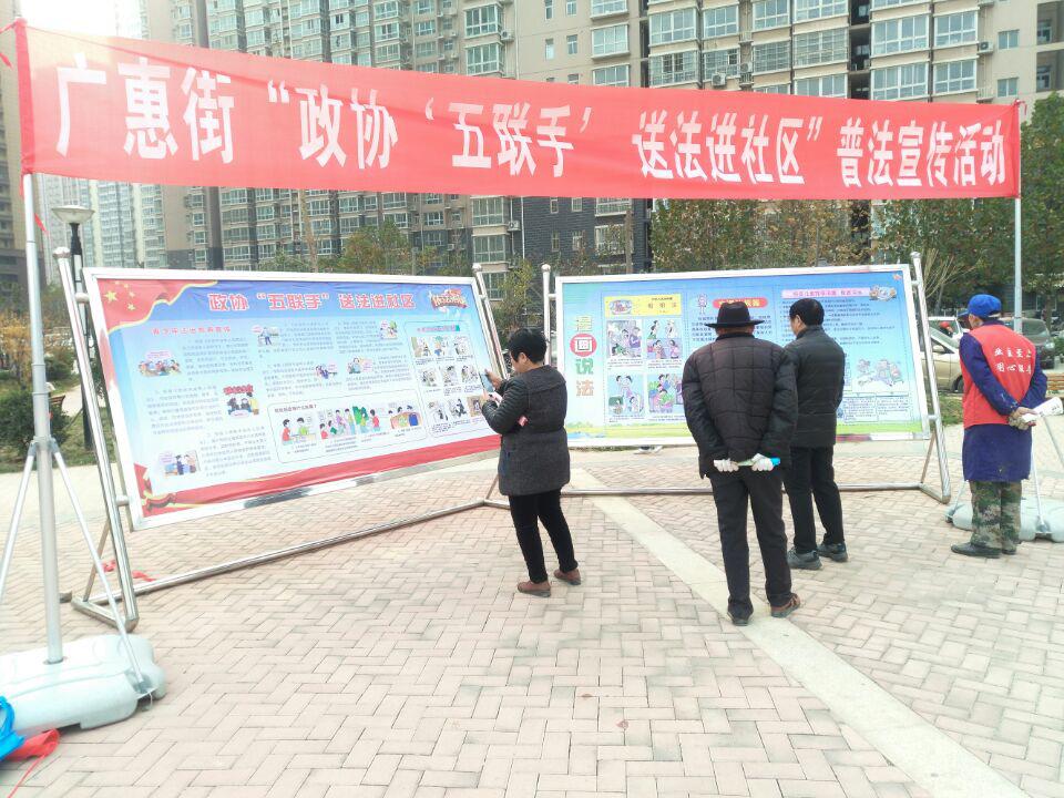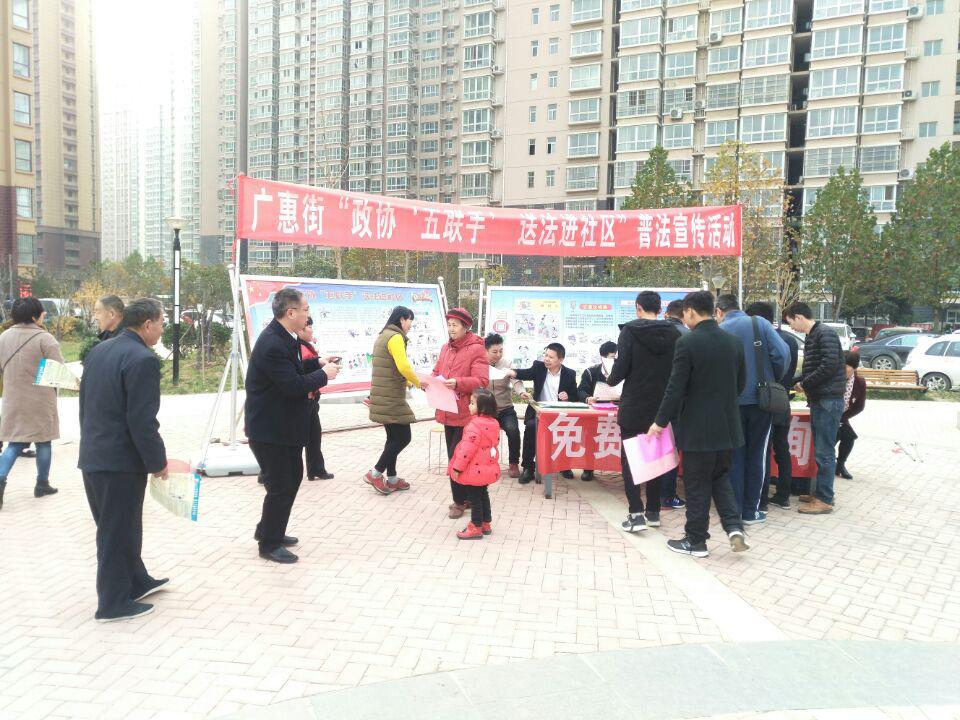 11月16日,广惠街政协工委联合特邀、无党派、文学艺术三个界别中从事法制专业的7位政协委员,在星城国际西苑小区内开展“政协‘五联手’ 送法进社区”普法宣传活动。