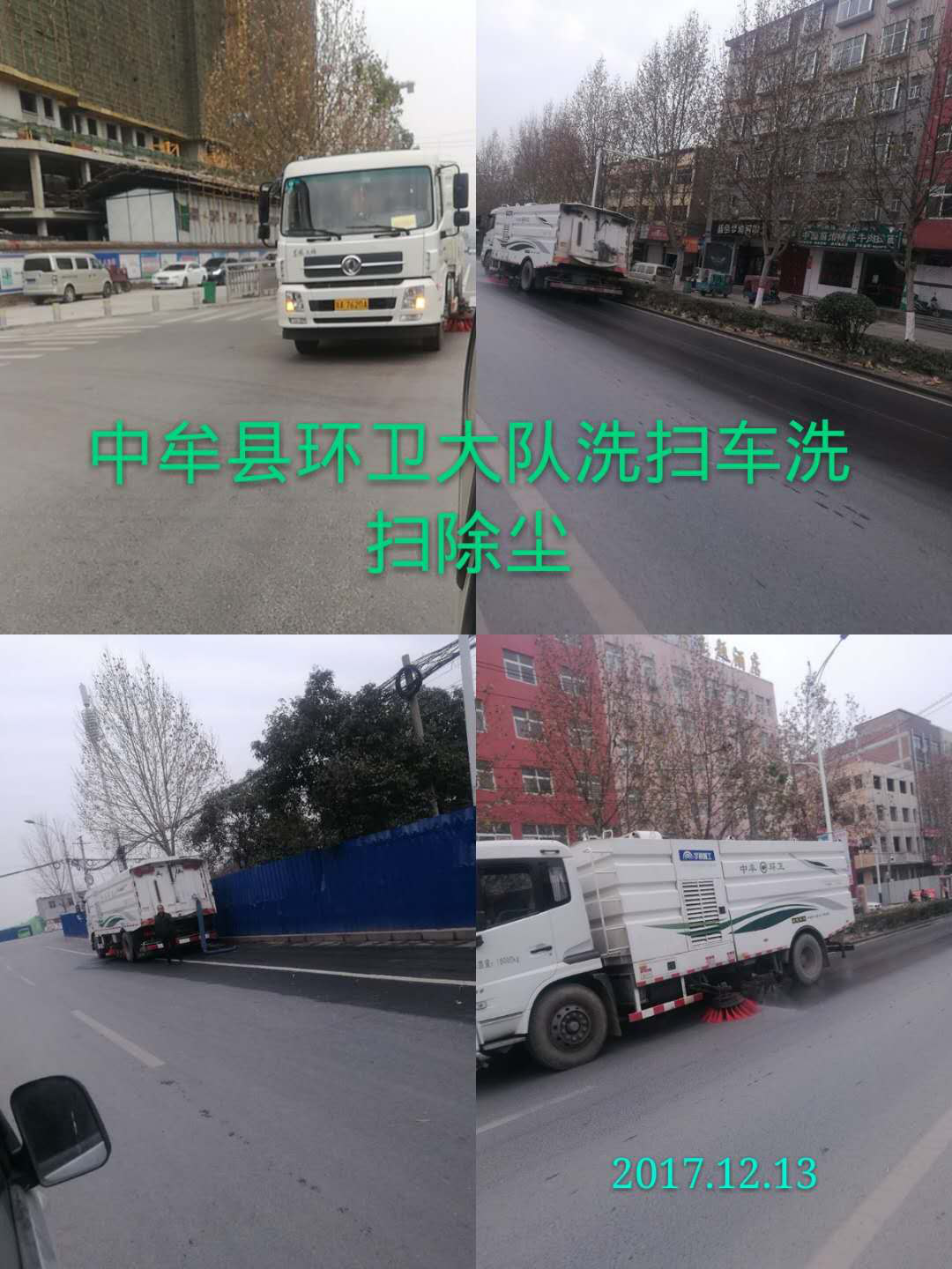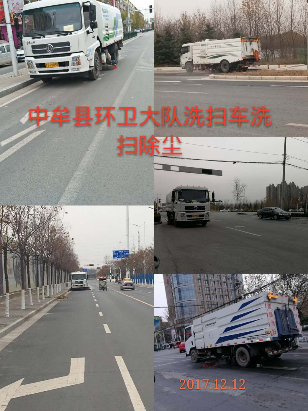 大气污染防治攻坚冲刺期间,环卫大队每天出动洒水车19辆,洒水5次(非冰冻期,低于4度不再进行洒水);出动吸尘车12辆,于早上5:30至8:30,下午12:30至15:30进行吸尘作业;出动洗扫车24辆,于上午10:00至12:00(冬季),下午14:00至16:30进行洗扫作业。司机人员两班制作业,机械清扫设备全部上路,车辆使用率达到100%。