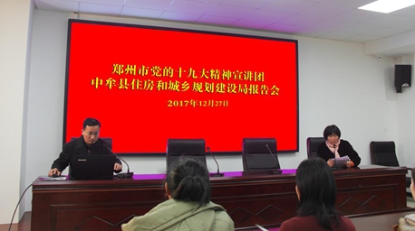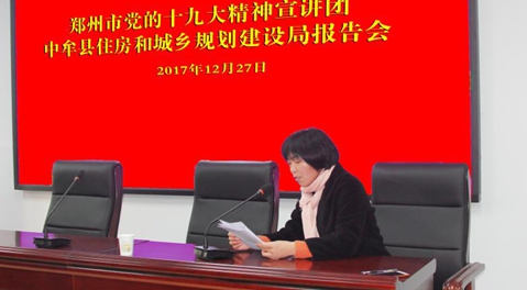 2017年12月27日上午9:30,住建局在房产大厦4楼1号会议室召开郑州市党的十九大精神宣讲报告会。