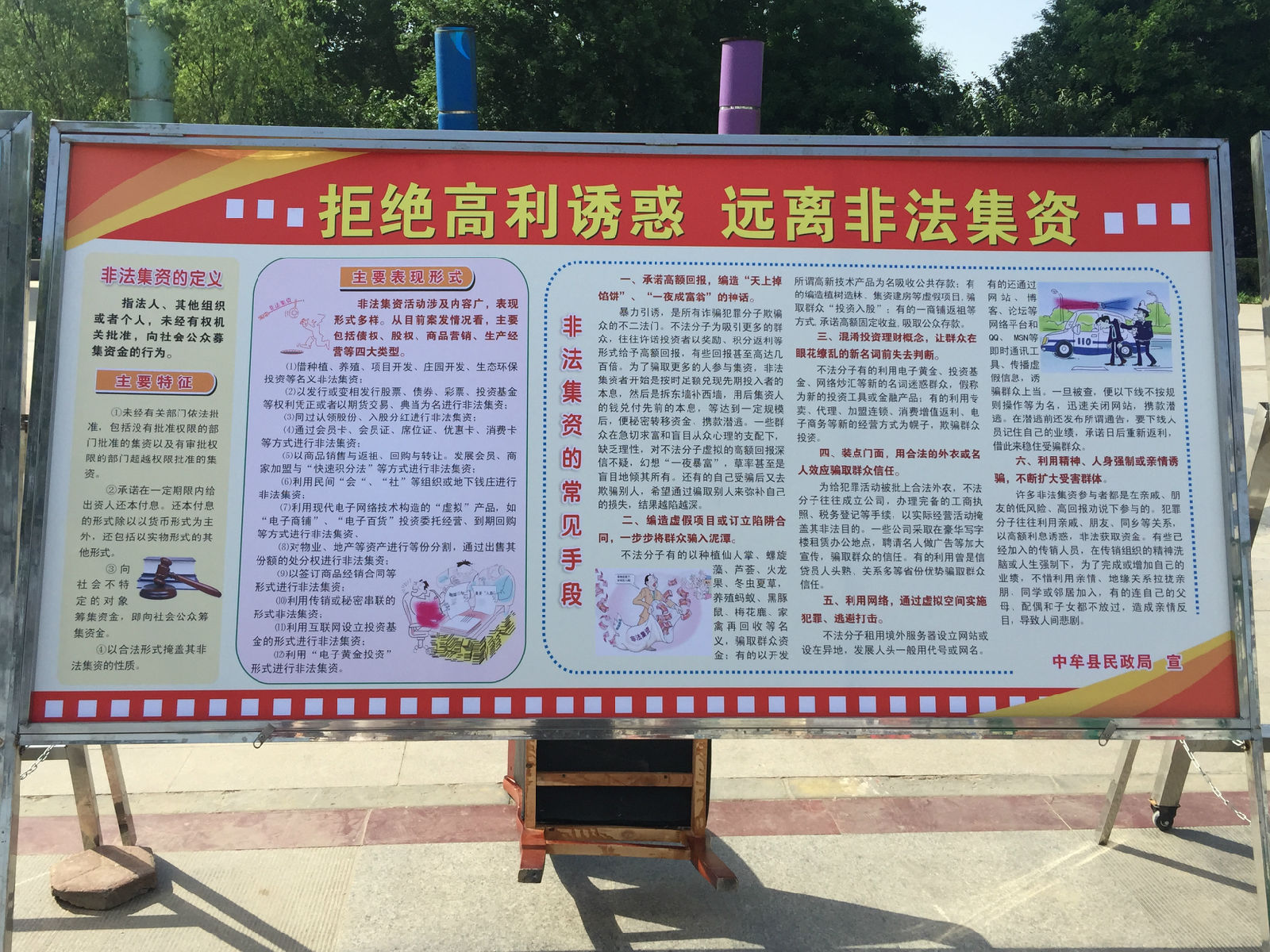 为有效预防和打击非法集资行为,提高社会公众防范非法集资违法犯罪活动的意识和能力,切实保护全县老年人的合法权益,5月22日上午,中牟县民政局组织老龄办人员在郑庵镇福山社区开展防范和打击非法集资宣传教育活动。