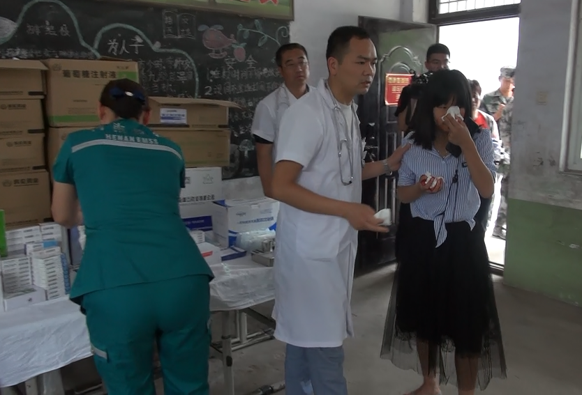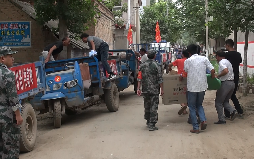 迁安组到西狼村堤北,组织村民抓紧时间撤离至西狼村堤南指定安置处,安置组接到群众后逐一登记造册,进行物资发放,然后安排医务组为其进行体检。