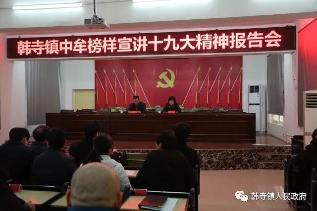 1月8日上午,韩寺镇邀请“中牟榜样”报告团的中牟县春峰果蔬专业合作社党支部书记、理事长李峰同志到我镇宣讲十九大精神。全体班子成员、机关干部、各村三主干、镇级人大代表参加会议。