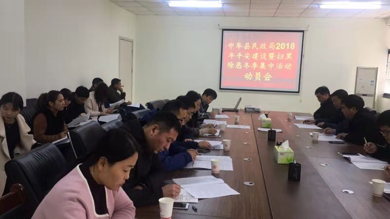 为贯彻落实中央、省、市、县关于深化平安建设及扫黑除恶专项斗争的决策部署,推动平安建设和扫黑除恶专项斗争向纵深发展,促进社会和谐稳定,11月12日上午,中牟县民政局召开2018年平安建设暨扫黑除恶冬季集中活动动员会,民政局各科室及二级机构负责人参加了此次会议。