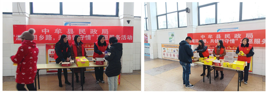 一方站台,欢乐融融,民政局党员志愿服务队用实际行动践行了“为人民服务”的宗旨,使返乡的乘客们感受到浓浓的暖意。