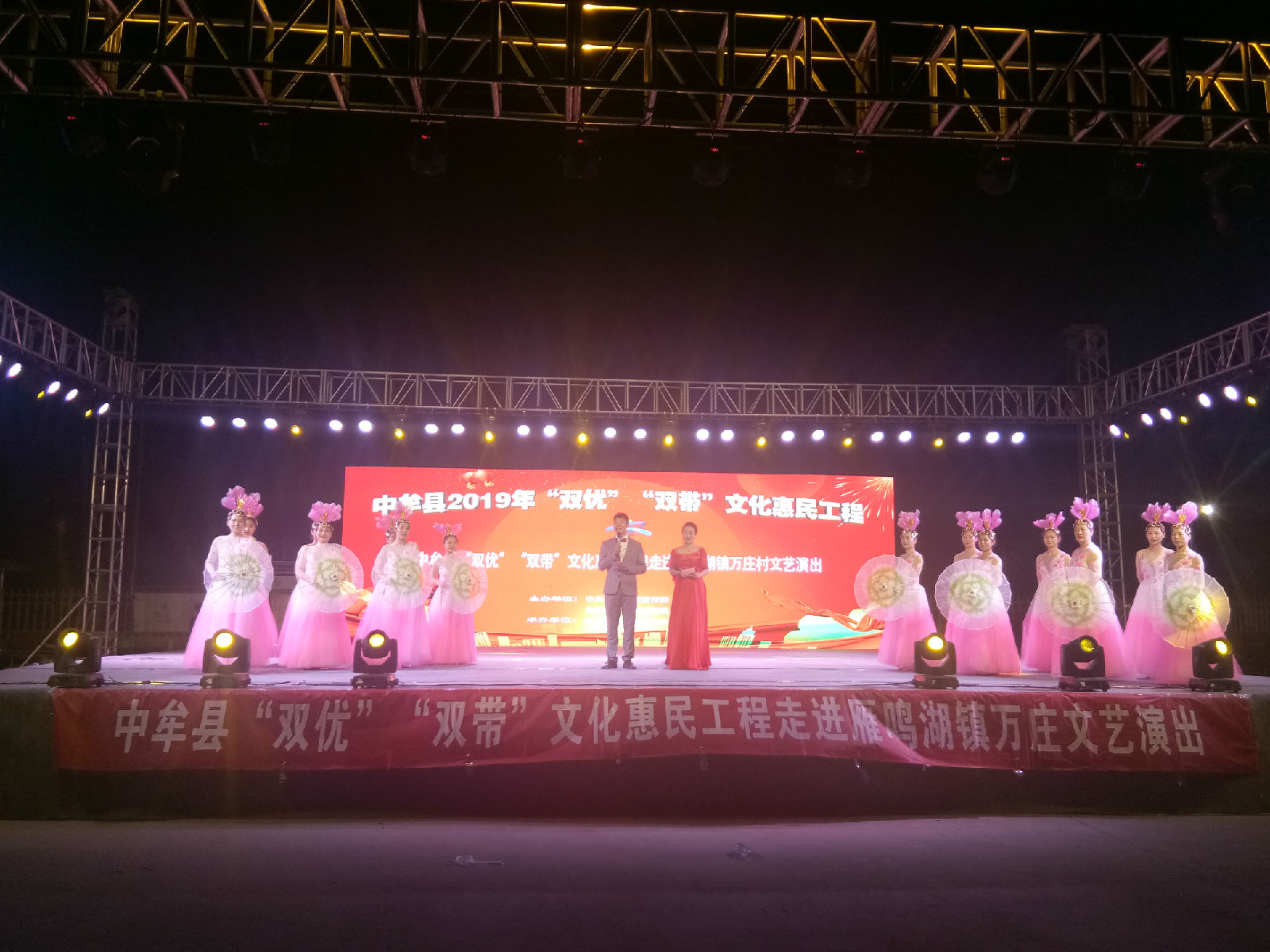 4月17日晚,由县委宣传部、县文化广电旅游局主办的“双优”“双带”文化惠民工程走进雁鸣湖镇,为雁鸣湖镇辖区群众送上了一场精彩的文化盛宴。
