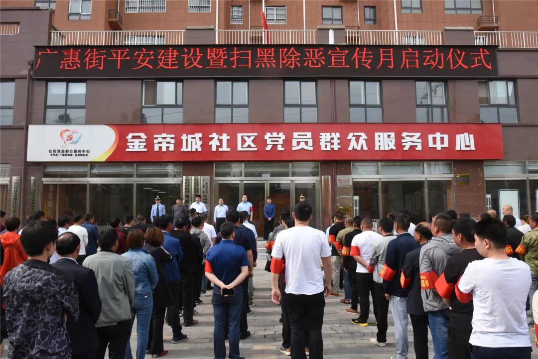 启动仪式上,首先由街道党工委副书记、办事处主任张胜勇同志宣读《广惠街街道办事处关于开展平安建设集中宣传月活动方案》。我街道从三个方面开展“平安建设暨扫黑除恶宣传月”活动,一是开展“大宣传”活动,在城乡主要街道、公路沿线制作固定标语和横幅,在人员密集处设立大型宣传标牌,利用村广播进行经常性的宣传教育,并组织开展几次集中宣传活动,向群众发放我街道制作印制有平安建设宣传内容的扇子、围裙、水杯,以多种形式开展宣传工作;二是开展“大防控”活动,加强街道巡防队、村义务巡防队队伍建设,统一佩戴“平安志愿者”红袖标24小时不间断在辖区开展治安巡防工作;三是开展“大走访”活动,入户调查并填写平安建设入户走访表,加强对矛盾纠纷突出和重大矛盾隐患的排查和预警,从源头上减少大规模事件的发生。