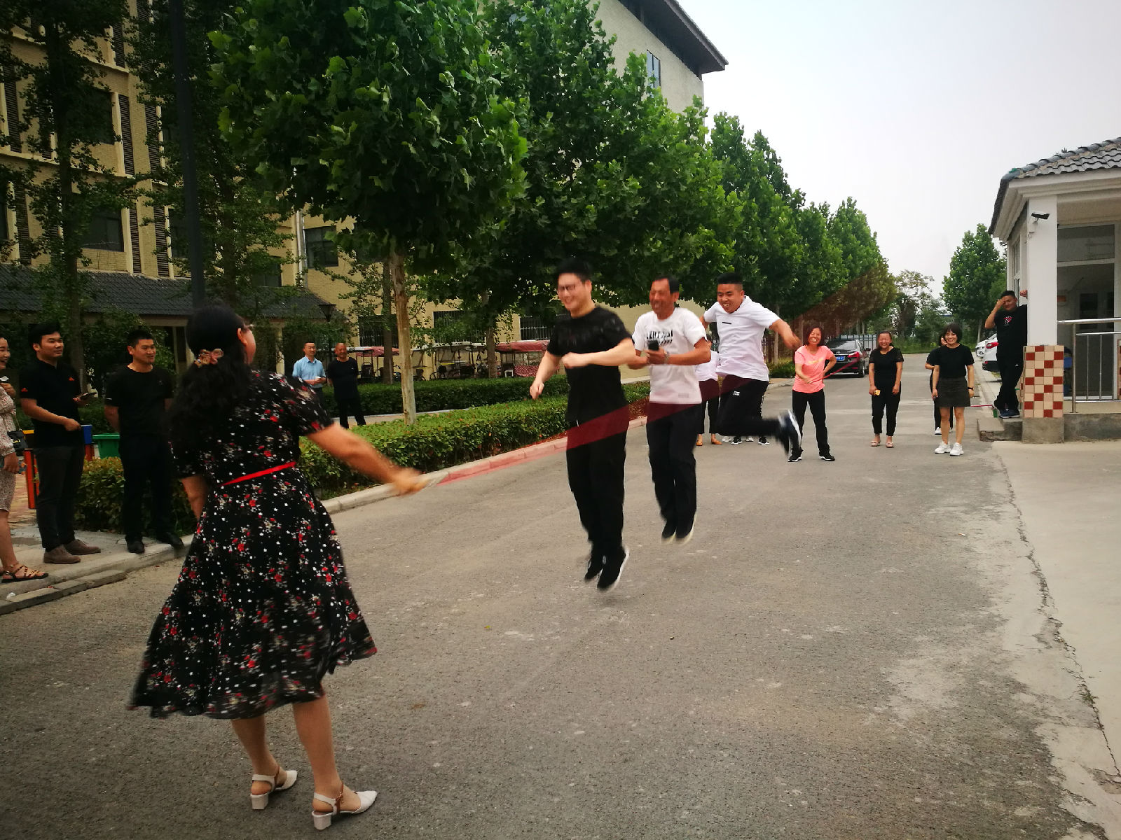 随后,大家分组进行了吃粽子比赛,哨声响起,参赛选手各显神通、狼吞虎咽,场面热闹非凡,赛场下的观战人员也是个个跃跃欲试,准备上台一展风采,吃粽子大赛在一片加油鼓劲儿声中告一段落。赛后,大家拿出跳绳在院子中进行了欢乐的饭后消食活动。