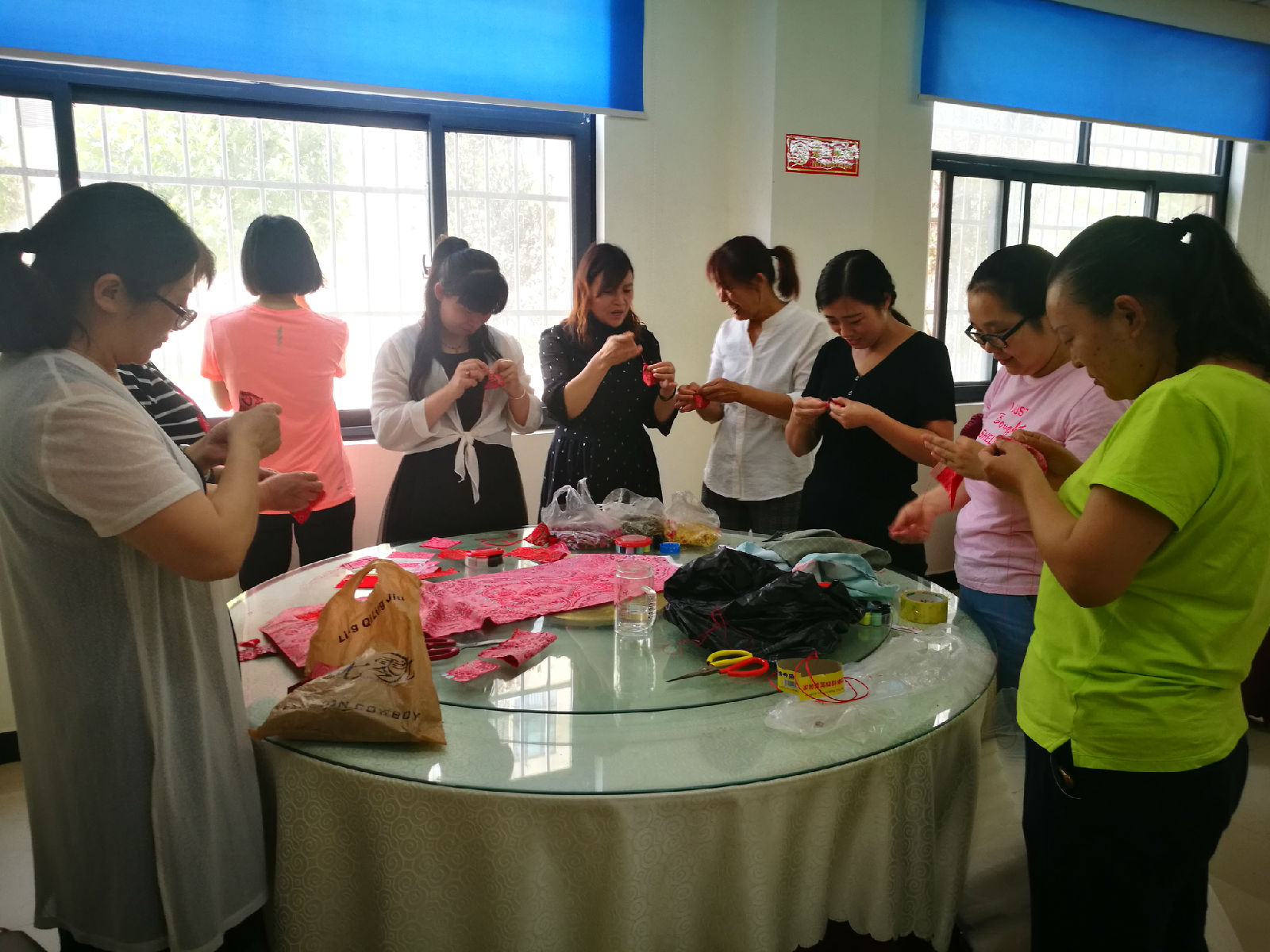 在福利中心院内,局干部职工代表和社会福利中心员工们共同包粽子、制香囊,大家齐动手、共欢乐,在一片欢声笑语中制成了一个个样式新颖、味道清新的小香囊。