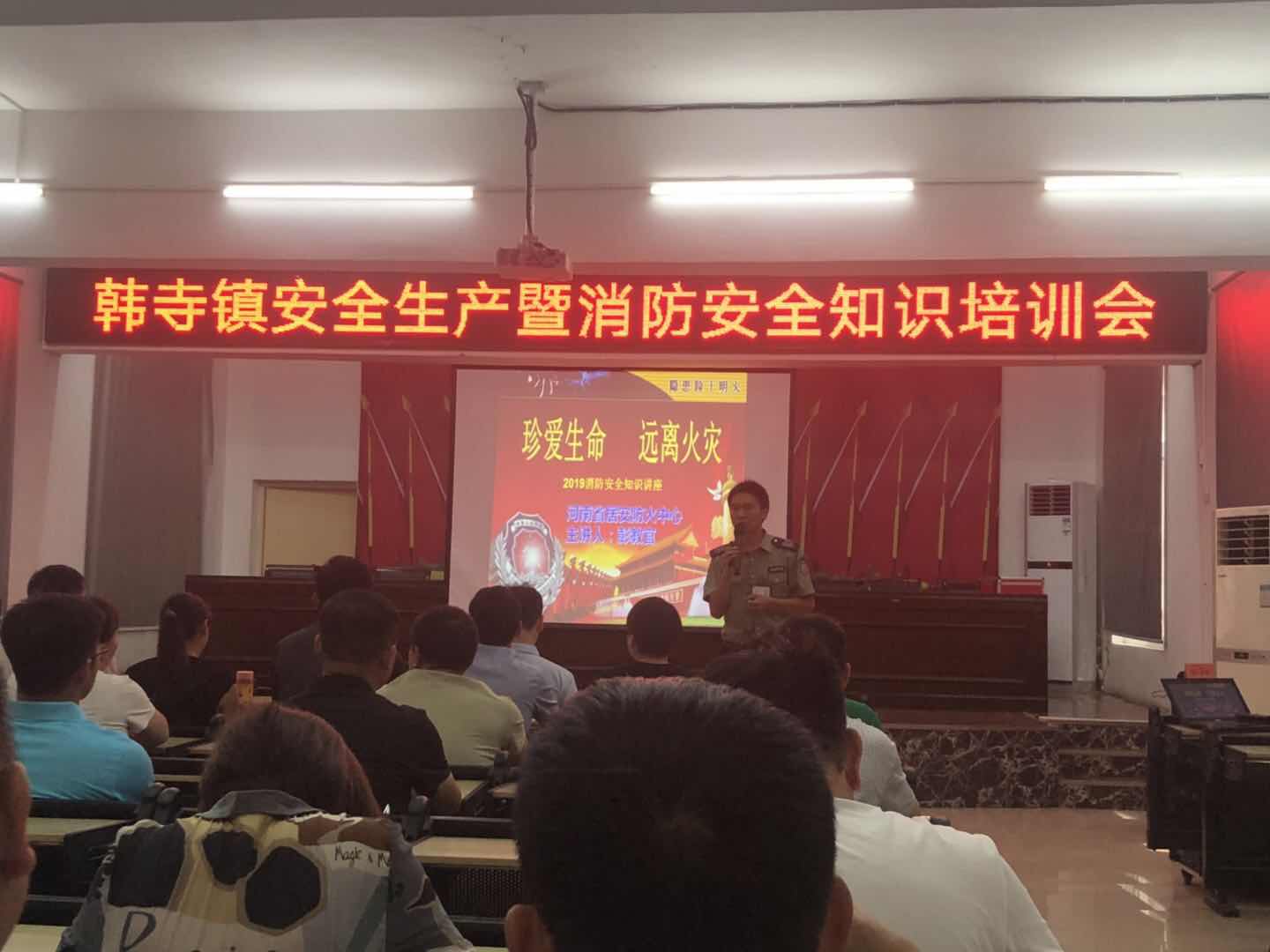 为切实加强韩寺镇消防安全管理,普及消防安全知识,进一步提升全镇干群的消防安全意识,18日下午,韩寺镇政府特邀请河南省安居防火中心彭教官为我们上了一堂消防安全知识培训课。参加此次培训的有镇全体机关干部、镇区各商户负责人。