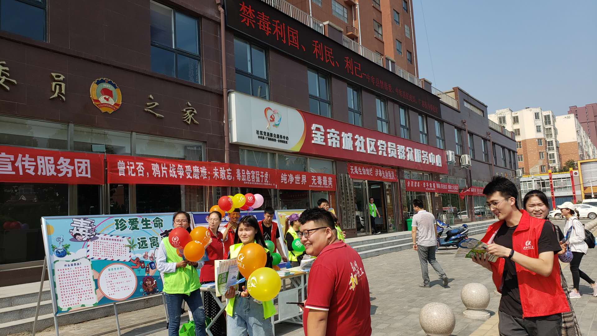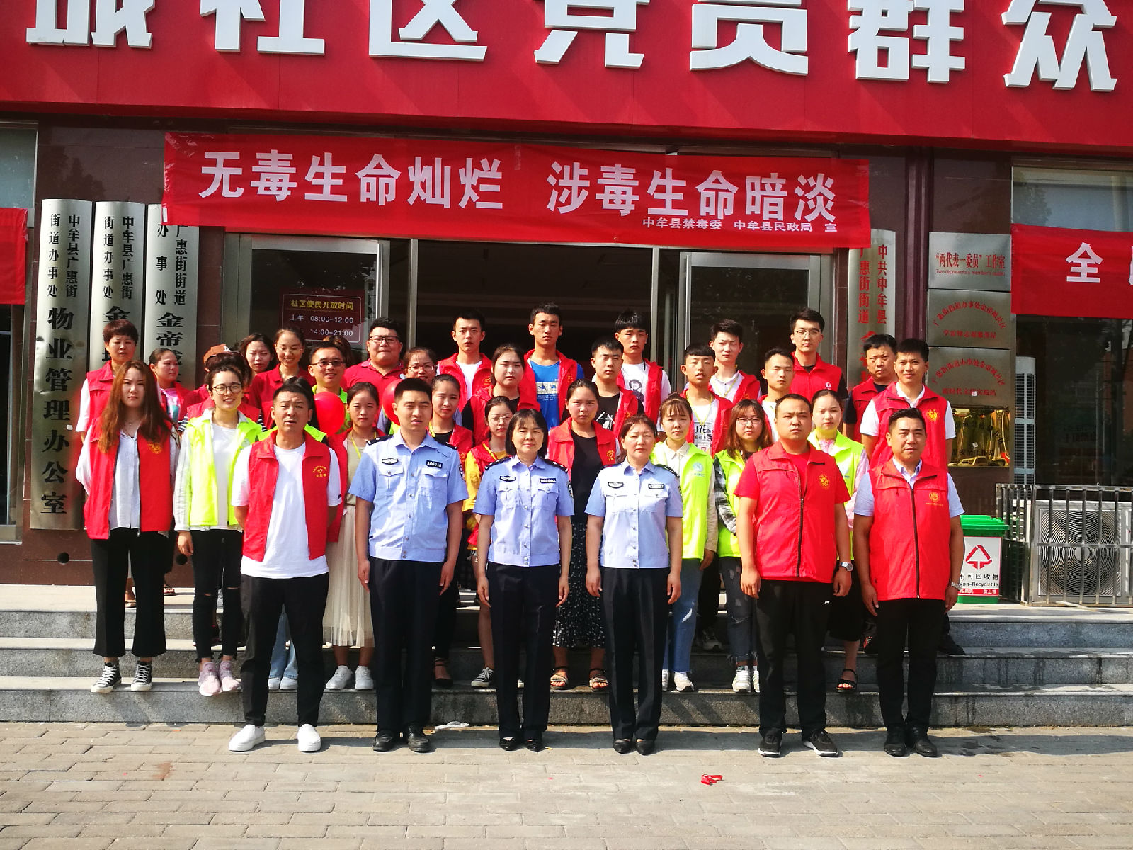 2019年6月26日是国际禁毒日,为加强居民对毒品的认识,普及禁毒知识,提升社区居民防范意识和拒毒能力,中牟县禁毒委、中牟县民政局联合雨之露社工、尚和社工、玖久社工、馨家苑社工及金帝城社区志愿服务队、郑州电子信息职业技术学院青少年禁毒防艾宣传服务团在广惠街金帝城社区开展“全民禁毒· 牵手幸福”禁毒宣传活动。