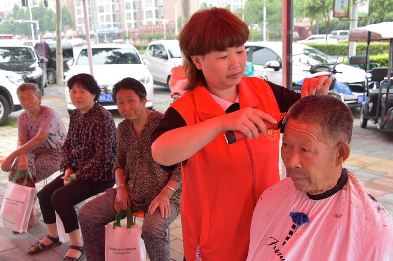 “咔嚓、咔嚓”,三下两下,李大爷的头发就被志愿者修剪得干净清爽。家住金帝城社区的李大爷因身体原因行动不便,加上小区周围适合老年人理发且收费相对比较低的理发店不多,理发这一平常小事成了他的难题。“天热了,这两天正念叨着想理发呢,你们就来了,真是服务到我的心坎里了!”理完发的李大爷乐呵呵地对志愿者们说。