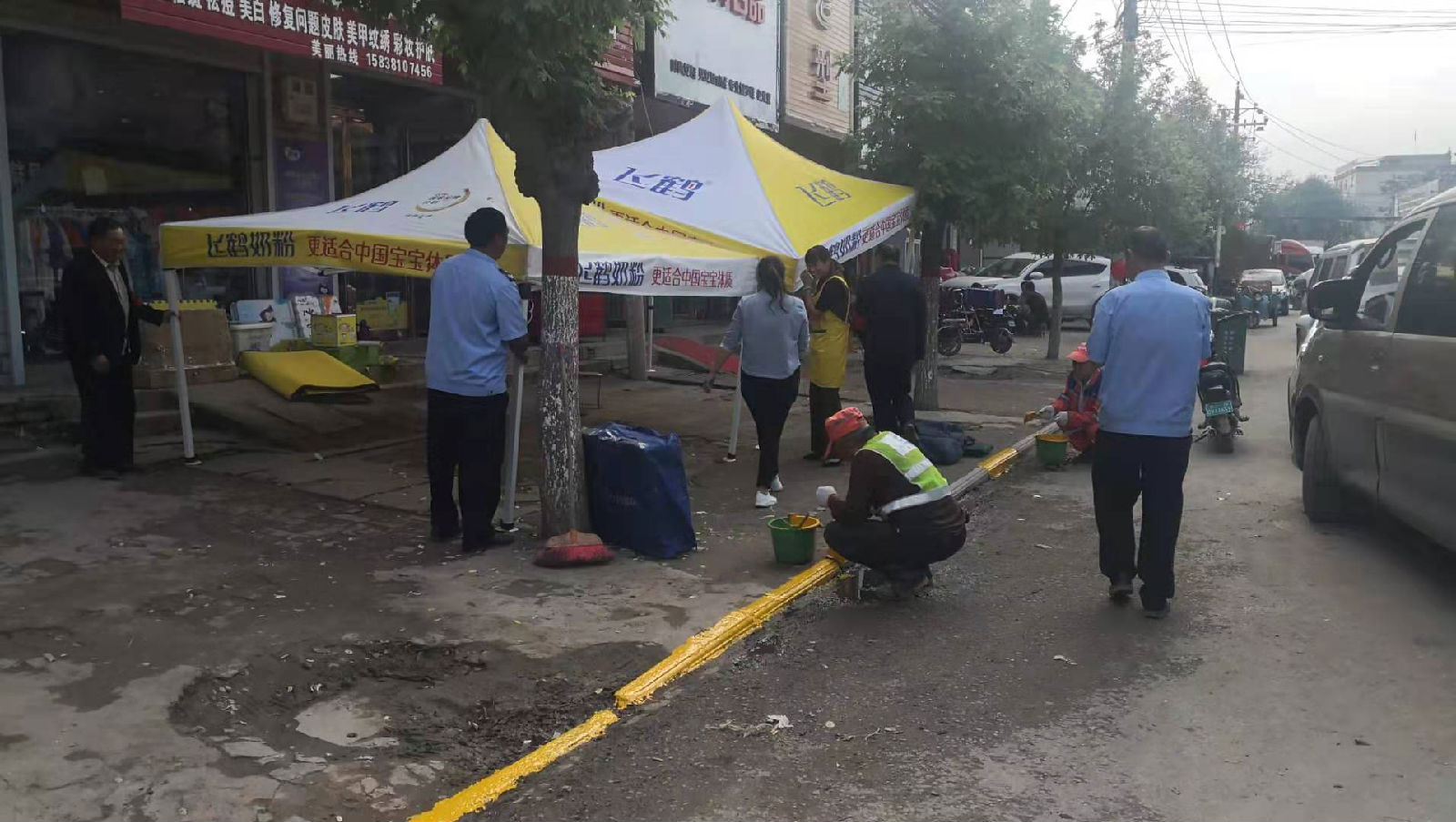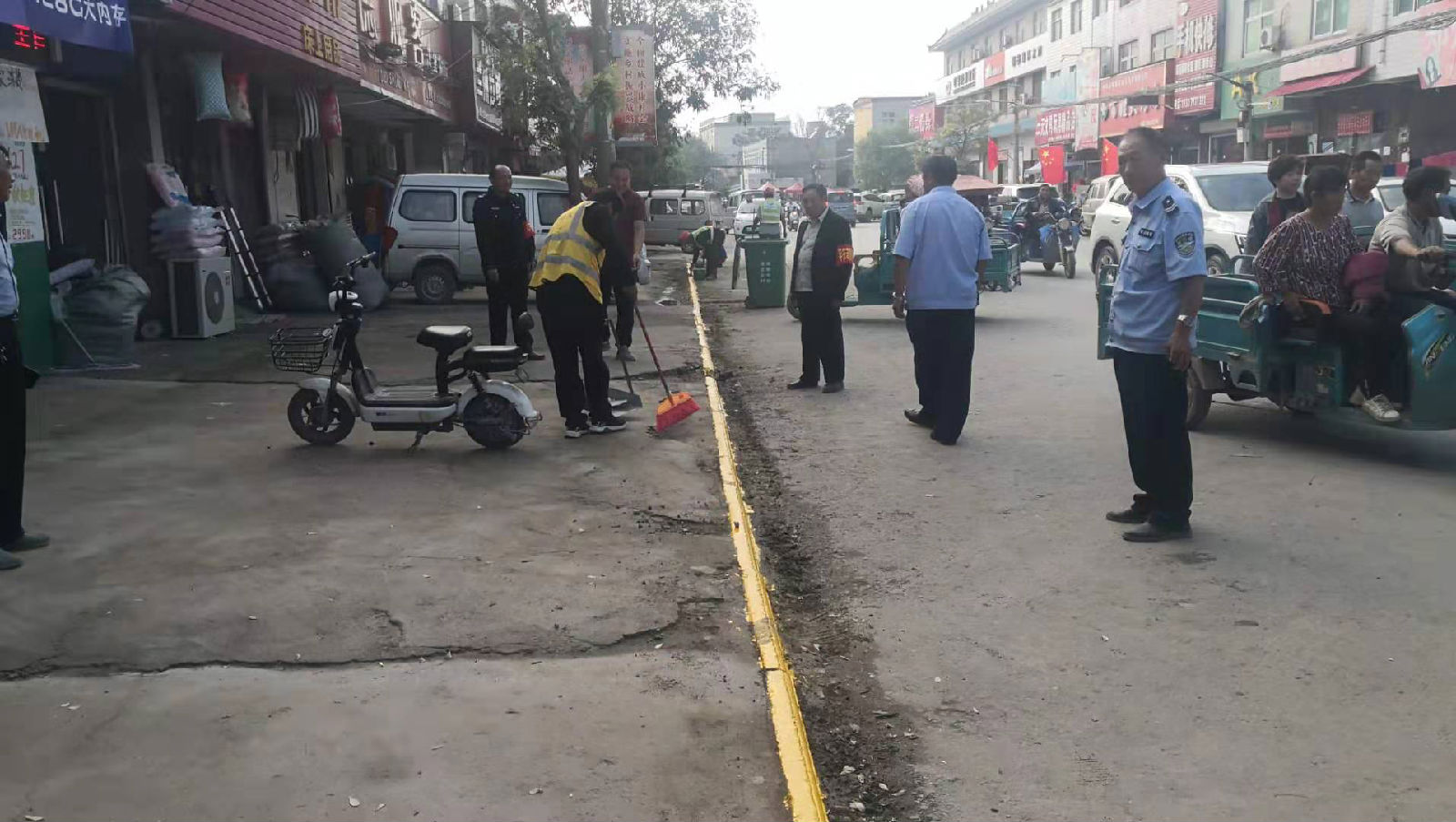 为进一步深化路长制责任,改善镇区村容村貌,加强镇区道路环境整治工作,营造干净、整洁的道路环境秩序。2019年9月16日下午,综合执法办综合治理人员和三级路长在镇区主路开展精细化工作,划出路沿石黄线标识,清除路边杂草,清扫路面卫生,劝阻流动商贩、出店经营商户,清除小广告,督促店面实行门前四包责任。