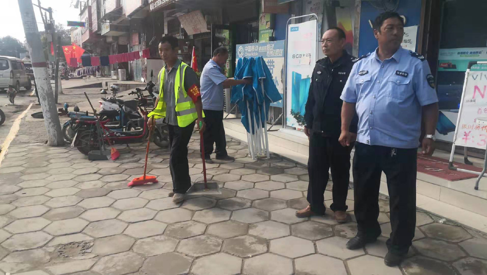 工作人员对沿街门店不规范经营、小商贩占道经营、车辆乱停乱放,垃圾随地乱扔等不文明行为进行劝导。通过开展“路长制”整治工作,镇区环境得到很大提升,道路两旁车辆规范有序。