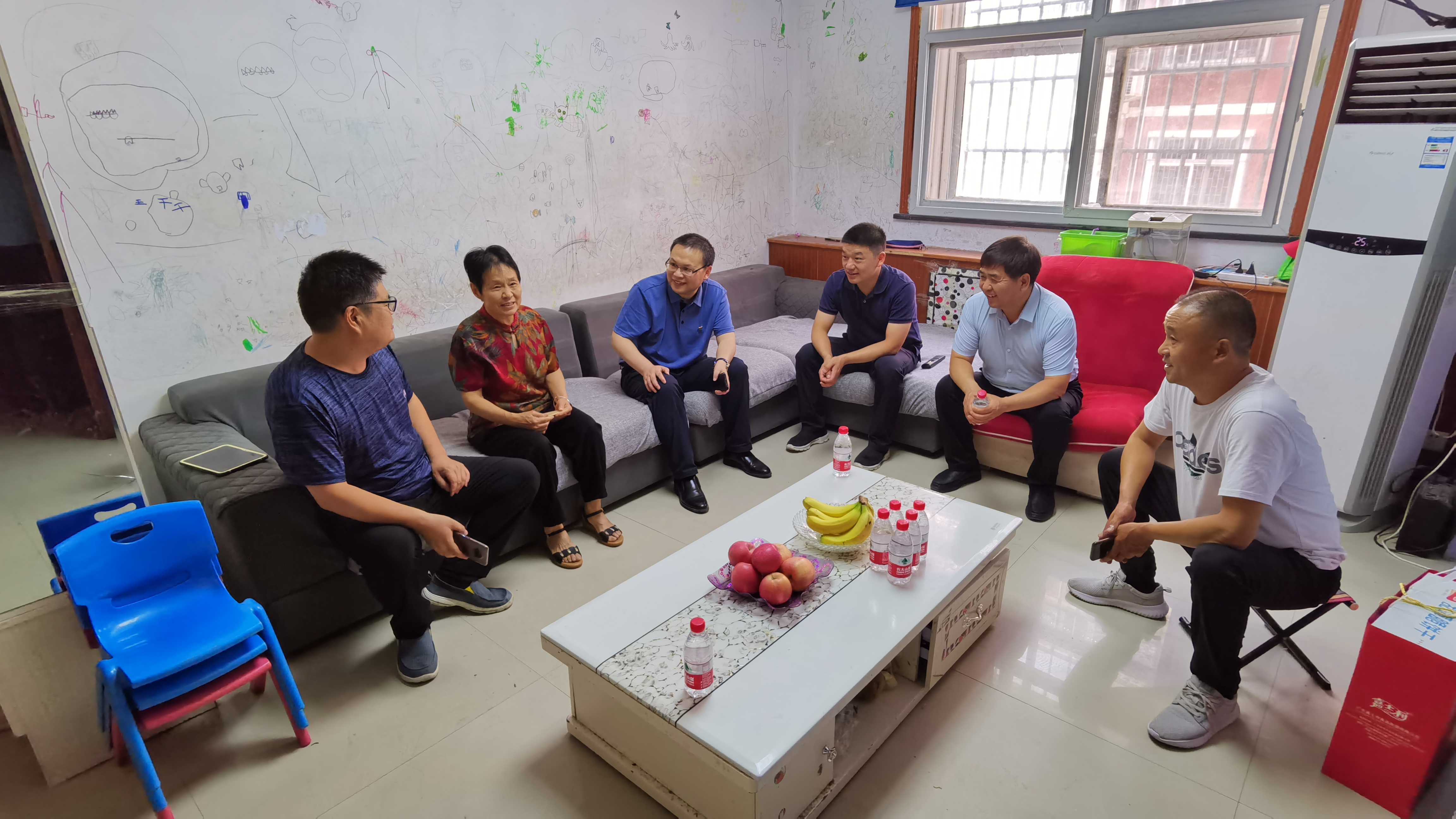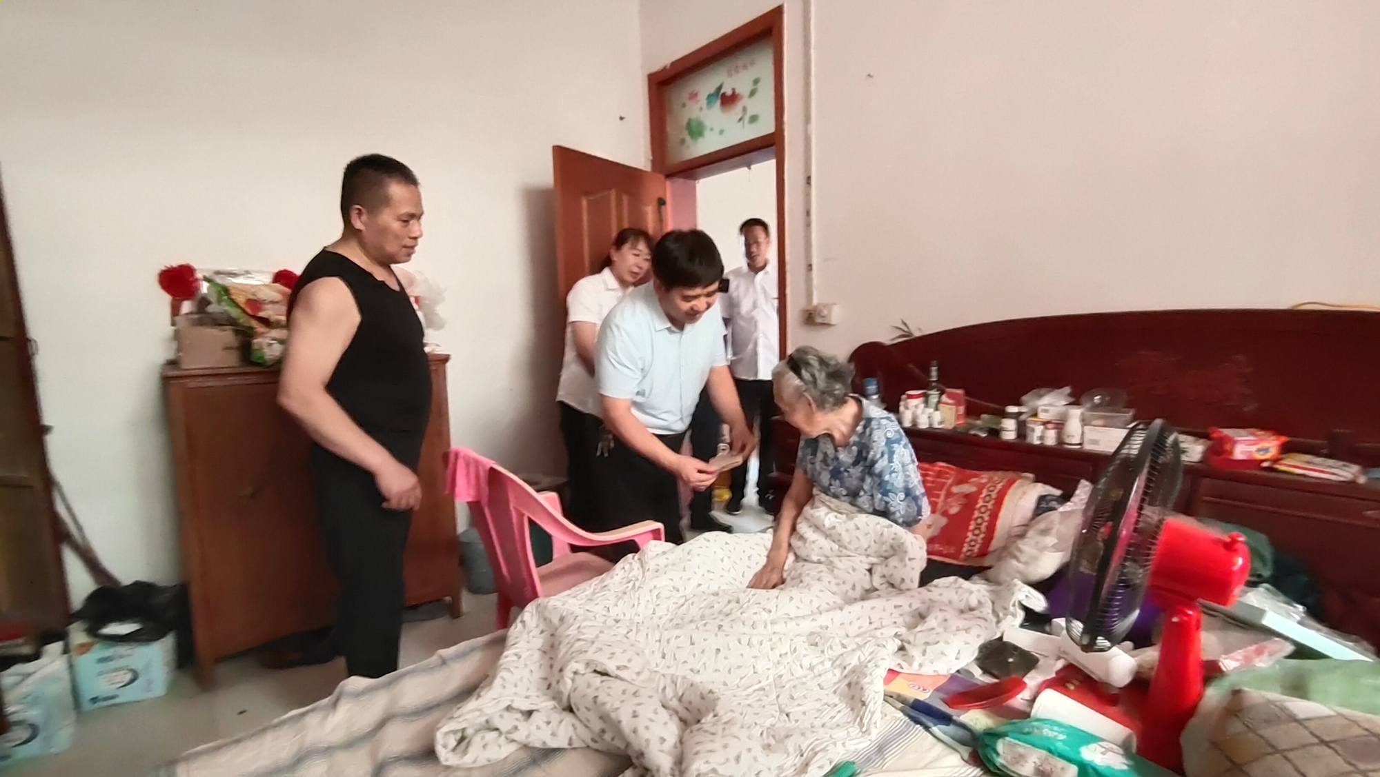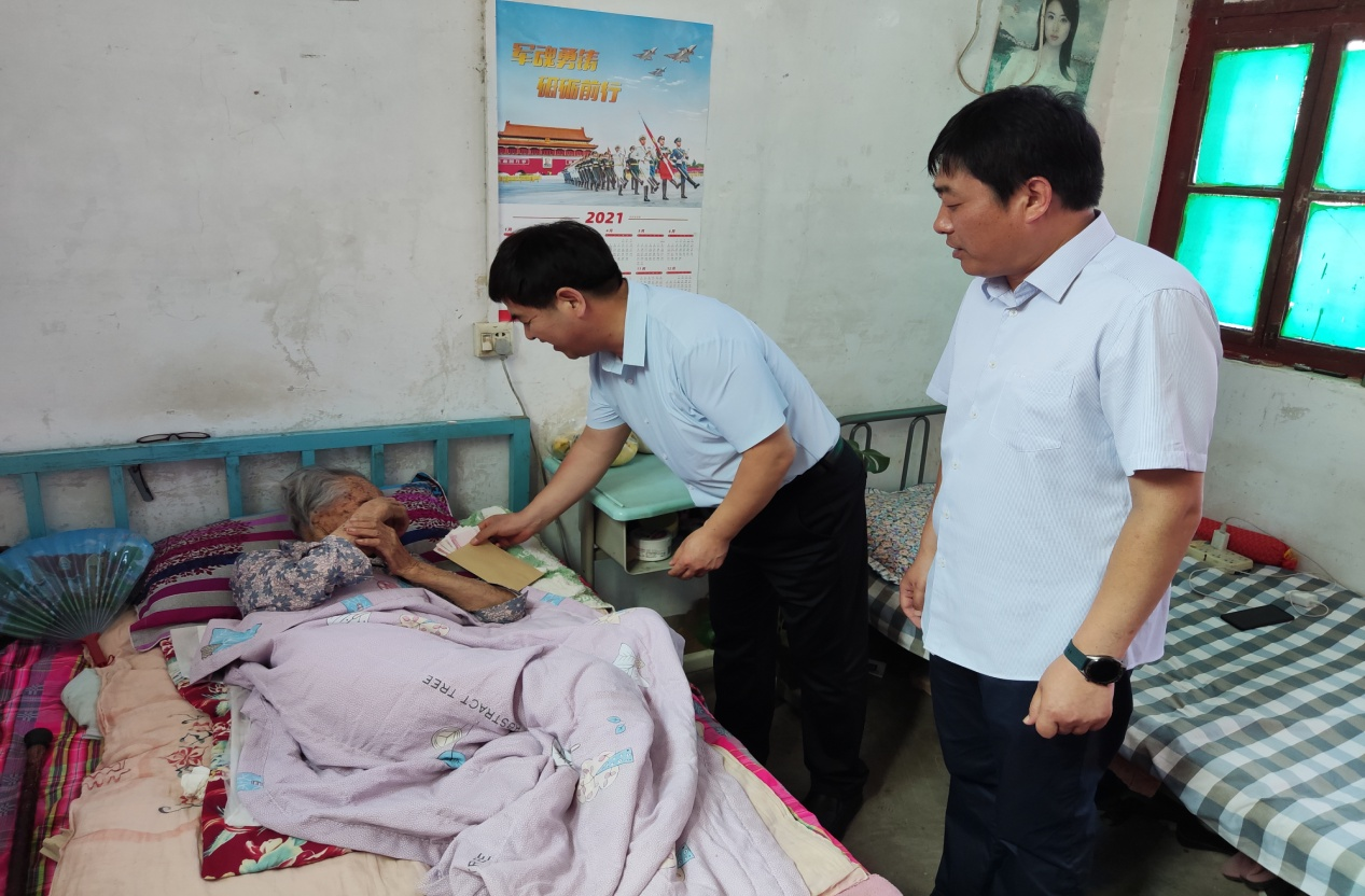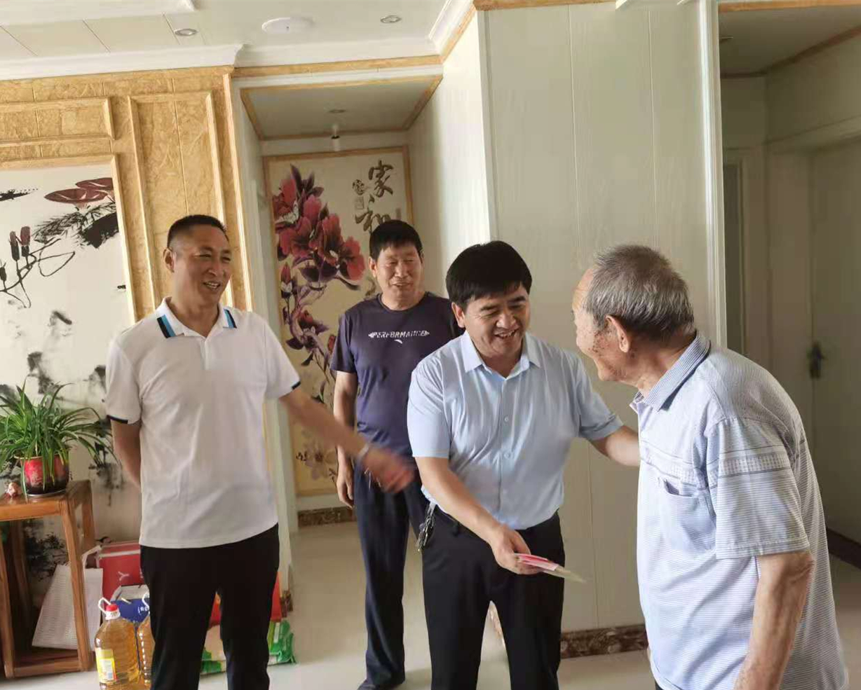 缅怀革命烈士英雄伟绩,弘扬中华民族传统美德,在建党一百周年来临之际,为表达对烈士遗属的亲切问候和崇高敬意,充分体现党和政府对烈士遗属的关怀和尊重,6 月 28日下午,中牟县退役军人事务局党组书记、局长周盾营带队,在姚家镇、大孟镇领导和退役军人服务站人员的陪同下,到我县烈士遗属李孝兰、师俊芝等家中进行走访慰问,并详细了解烈属们的家庭生活和身体状况,为他们送去了慰问金和大米、食用油、牛奶等慰问品。