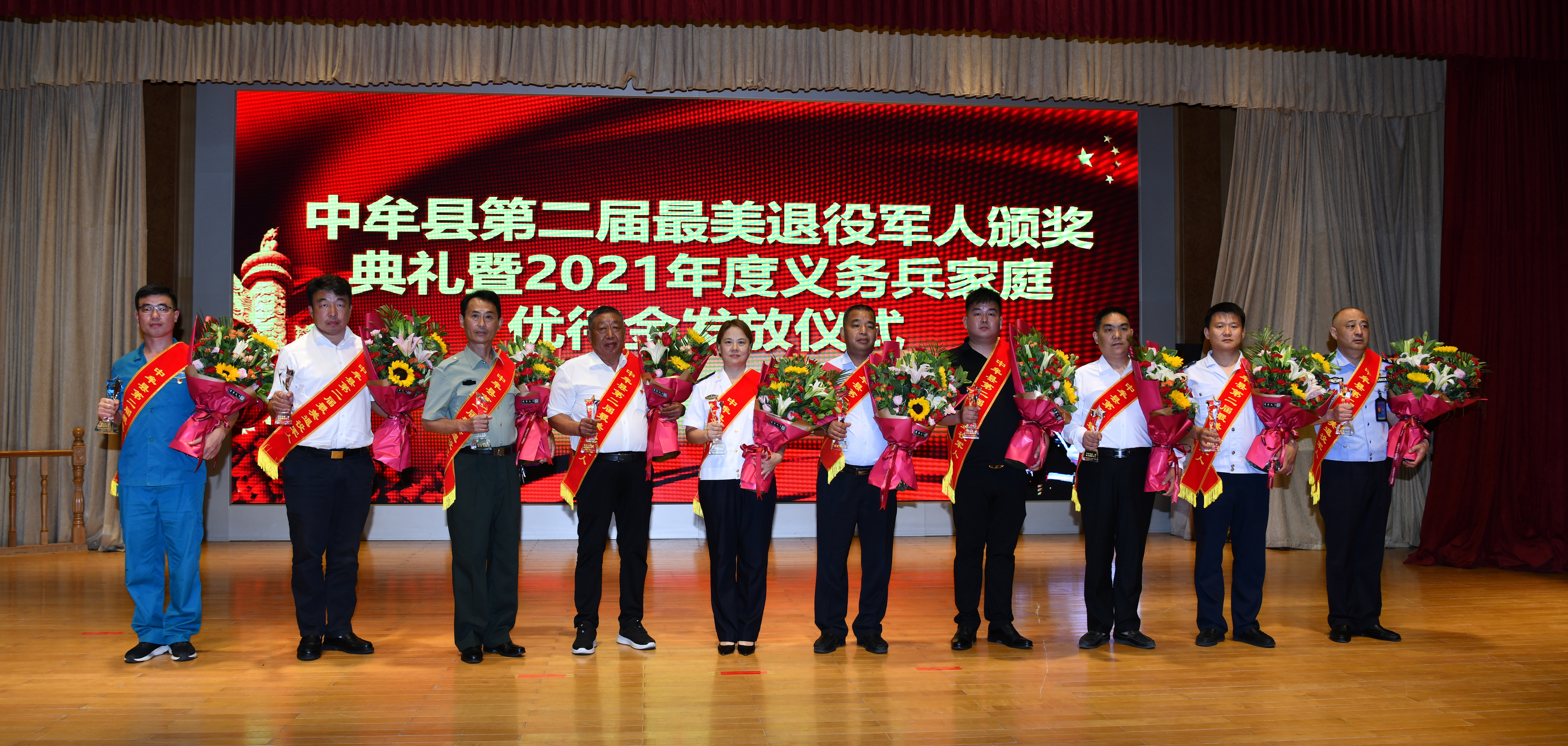 中牟县委副书记李晓亮,县委常委、宣传部长姬贤杰,县委常委、人武部政委李长松,县人武部部长张德炯,县人大常委会副主任杨书立,县政协党组成员李季扬等出席颁奖典礼,并为10位“最美退役军人”颁奖。仪式由县政府党组成员李增辉主持。