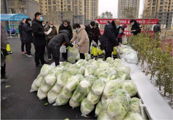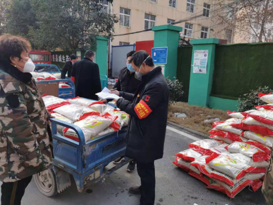 疫情管控期间群众外出不便,生活物质紧缺,街道各基层党支部践行“全心全意为人民服务”的宗旨,免费为群众采购发放蔬菜、大米等生活物资,切实保障人民群众生活。