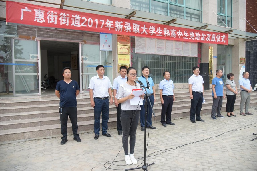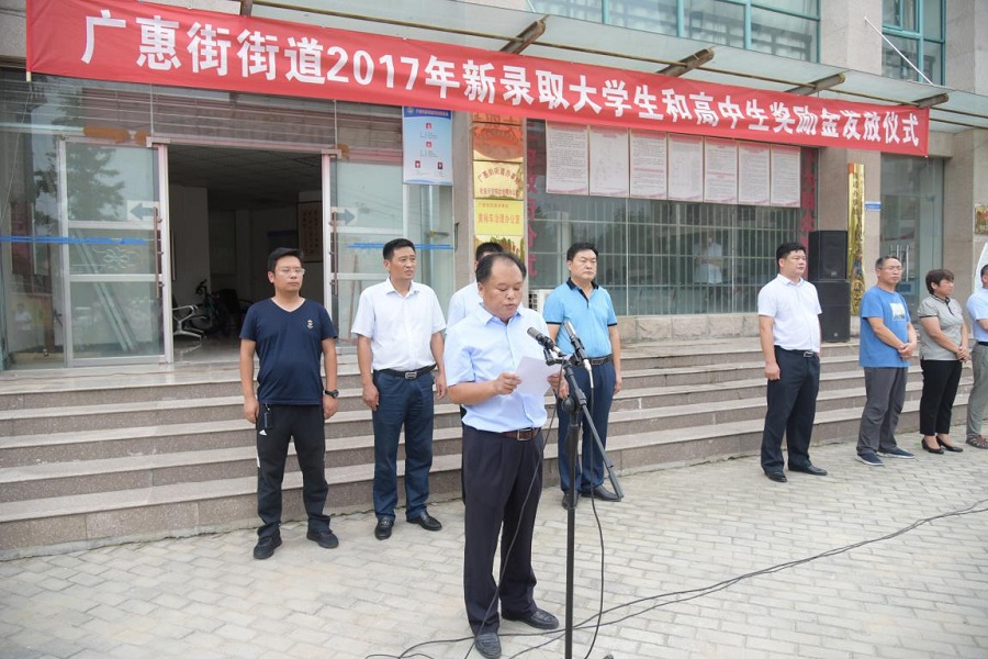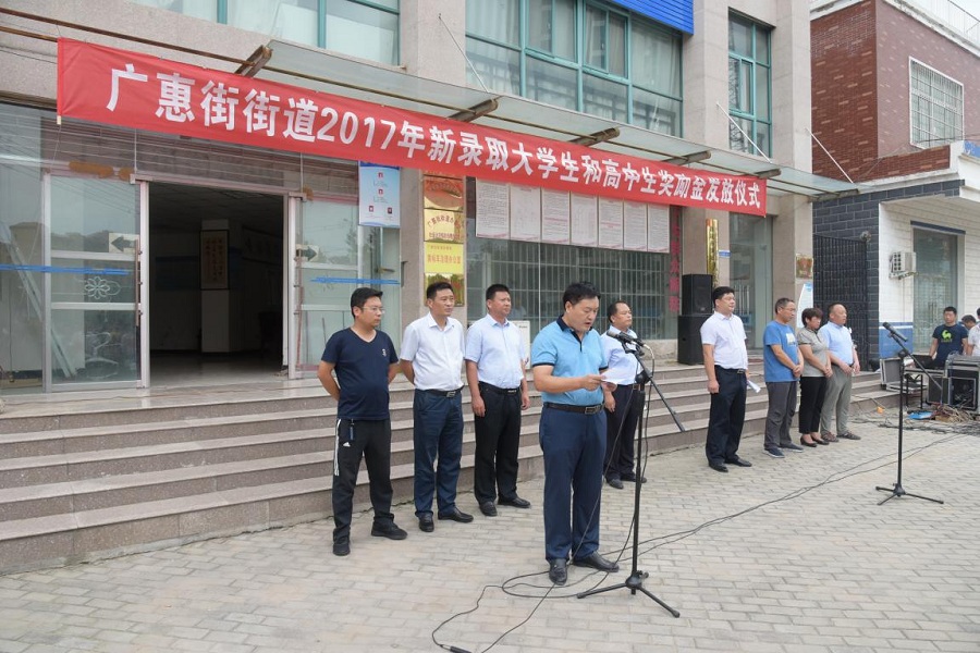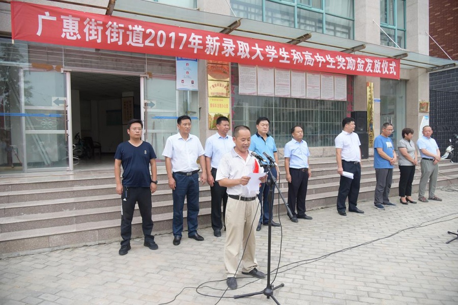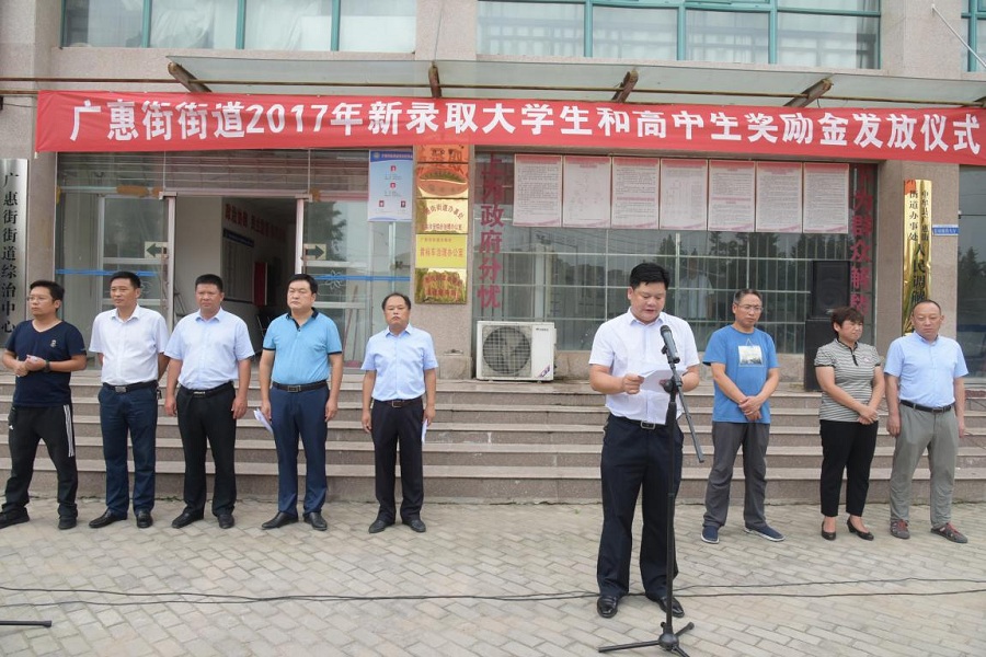 8月18日,广惠街街道举行新录取大学生和高中生奖励金发放仪式,街道班子成员、村组干部、学生家长和新录取学生欢聚一堂,共同庆祝全街道高考和中招的丰收,分享莘莘学子们成功的喜悦。