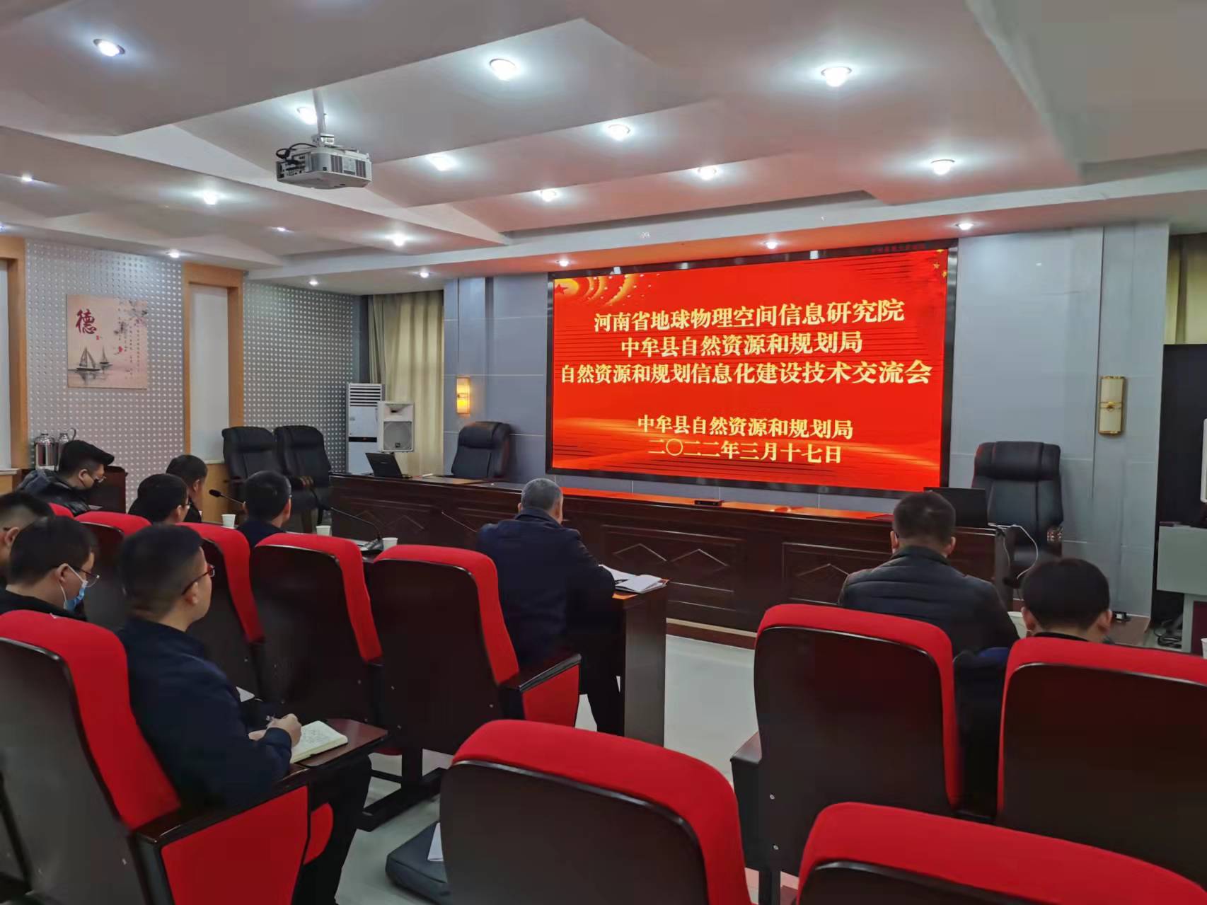 2022年3月17日上午,河南省地球物理空间信息研究院、中牟县自然资源和规划局联合举办自然资源和规划信息化建设技术交流会,河南省地球物理空间信息研究院副院长刘发发、河南省地球物理空间信息研究院信息中心书记焦利伟,中牟县自然资源和规划局党组成员、总工程师段军领出席会议。
